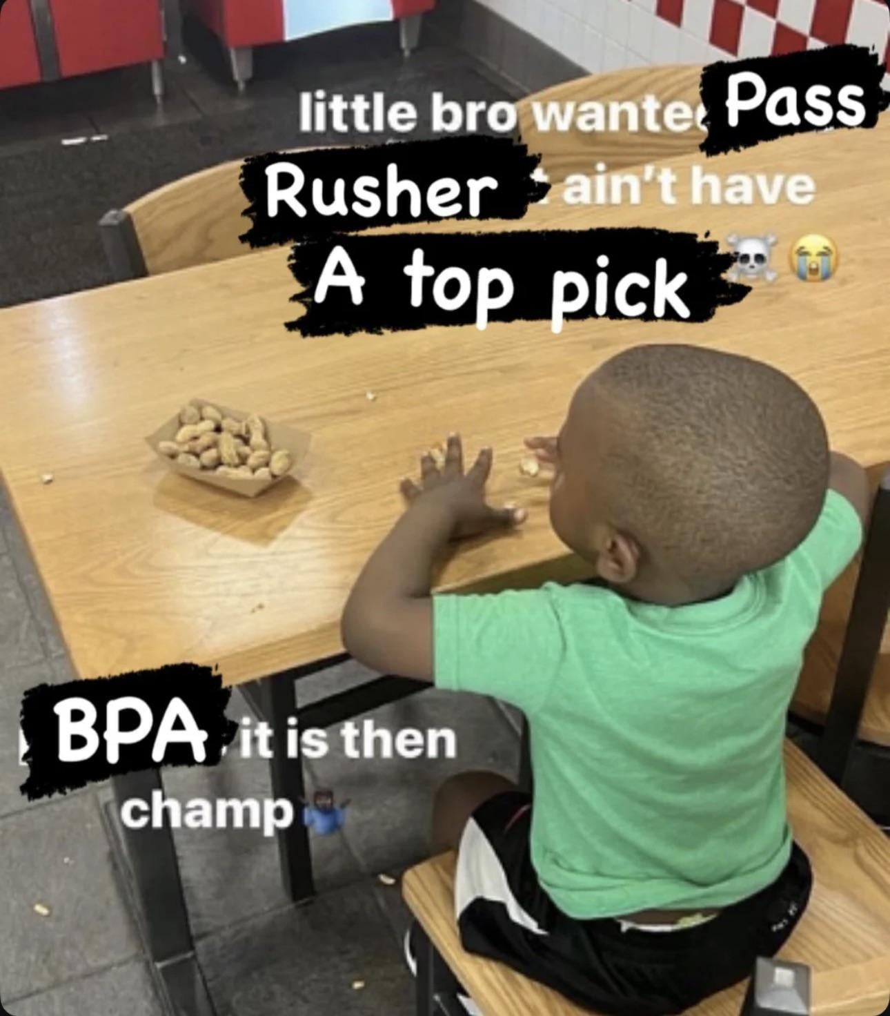 We were top 5 in sacks but bottom 5 in time to pressure the QB. I think OT or C is more important in the first two rounds but we do need an edge opposite hutch who’s going to get to the QB quickly