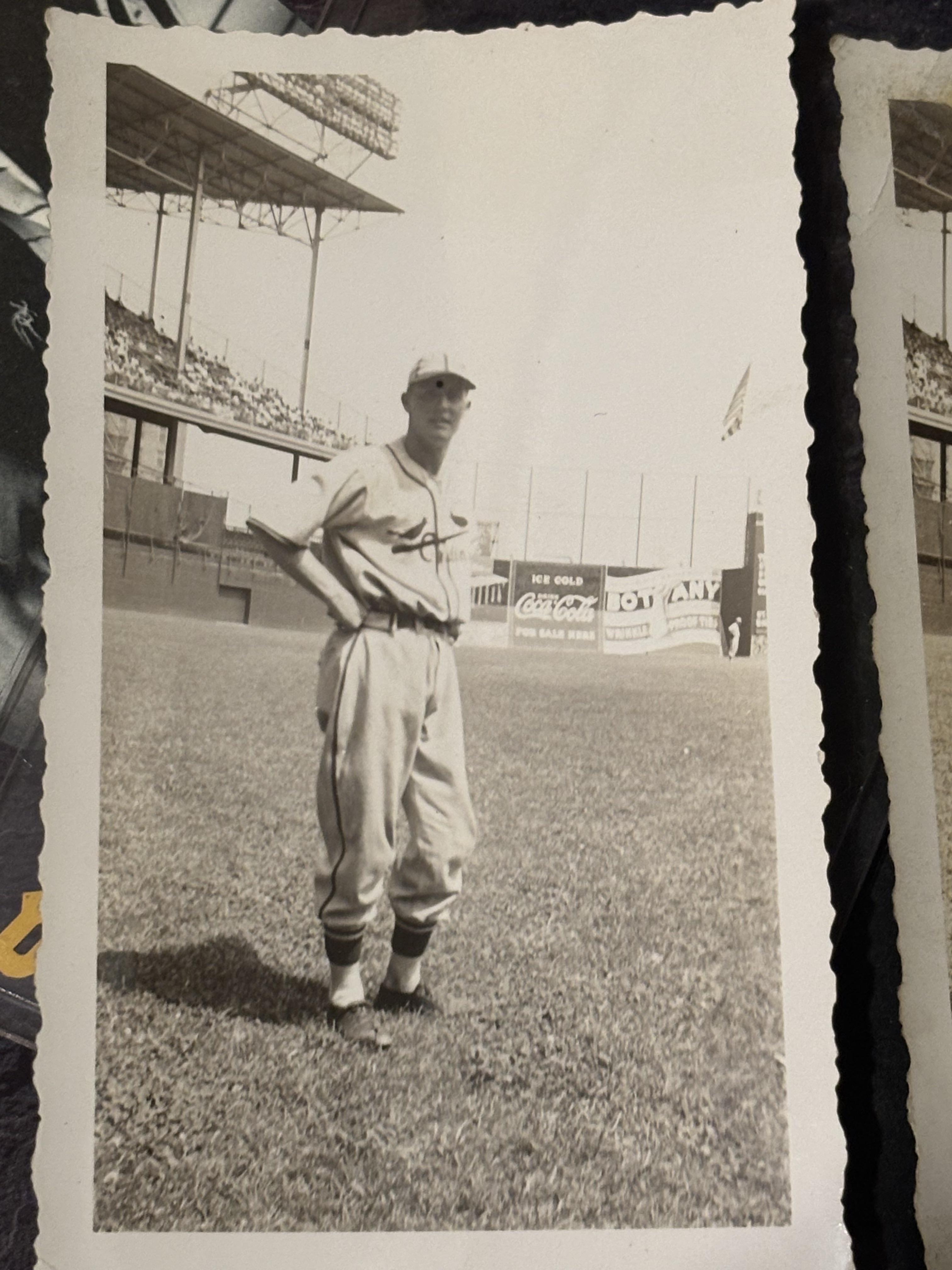 he is undoubtedly wearing a 1938 or 1939 uniform, it is not a 1933 uniform based on the piping on the belt loops, pants, sleeve, and placket. Hard to tell in this photo, but if his jersey has a button front it’s more likely 1938 uniform, if his jersey has a zipper front it’s definitely 1939. The left sleeve would be the giveaway because they wore a giant patch in ’39.