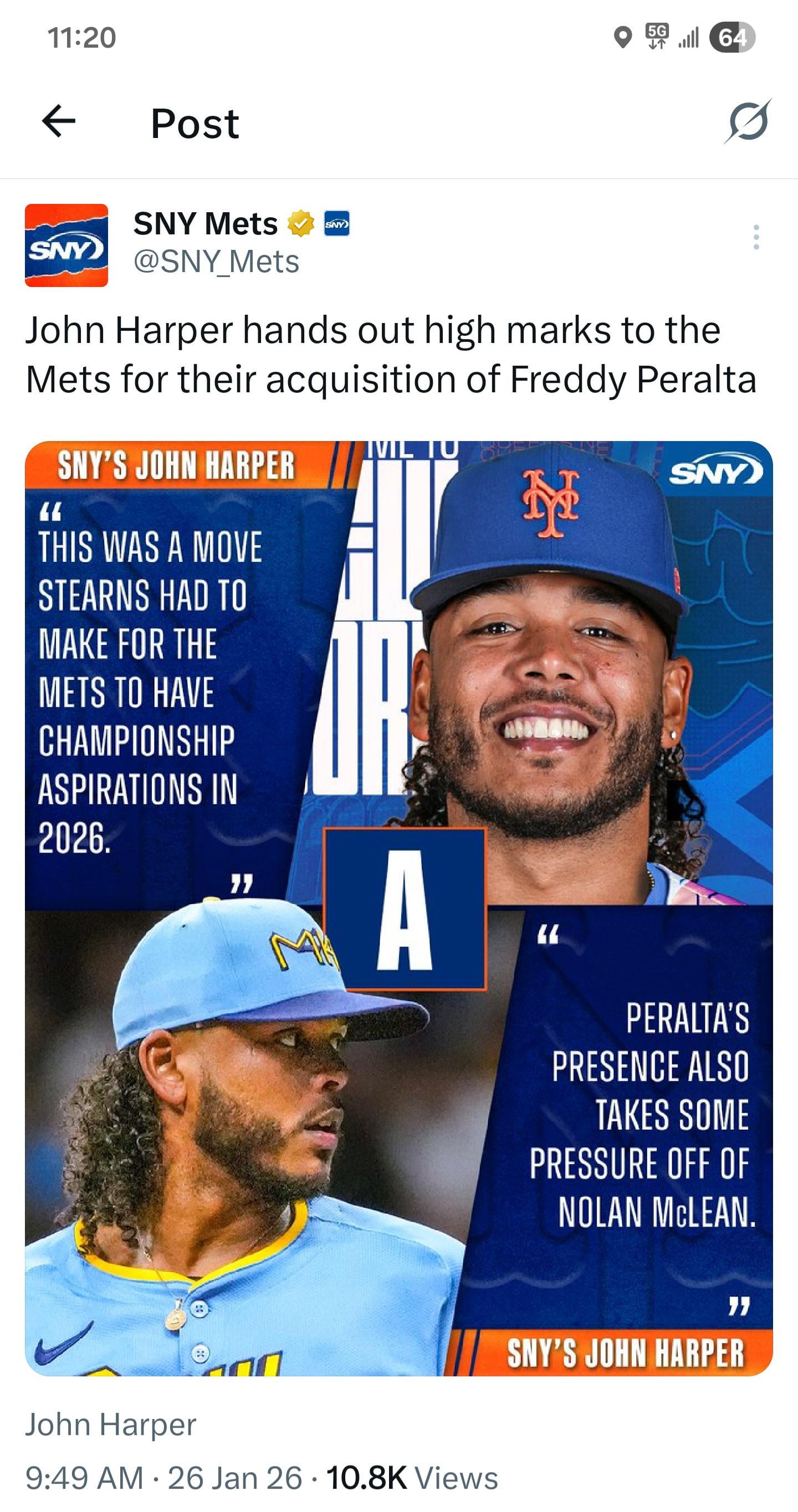 I’m going to call sproat for Tobias a bit of a wash. So really this was Jett for a #1 starter. That seems like a good trade. If senga can stay healthy, he’s actually a #1. Then you have Peterson who had great numbers when he hit his innings max and Holmes who was a starter for the first time. Then you have McLean who showed greatness and Manea who may be Sale-like. We could have 6 number 1s….but we are the Mets lol. This could be gooden, cone, darling, Fernandez and ojeda