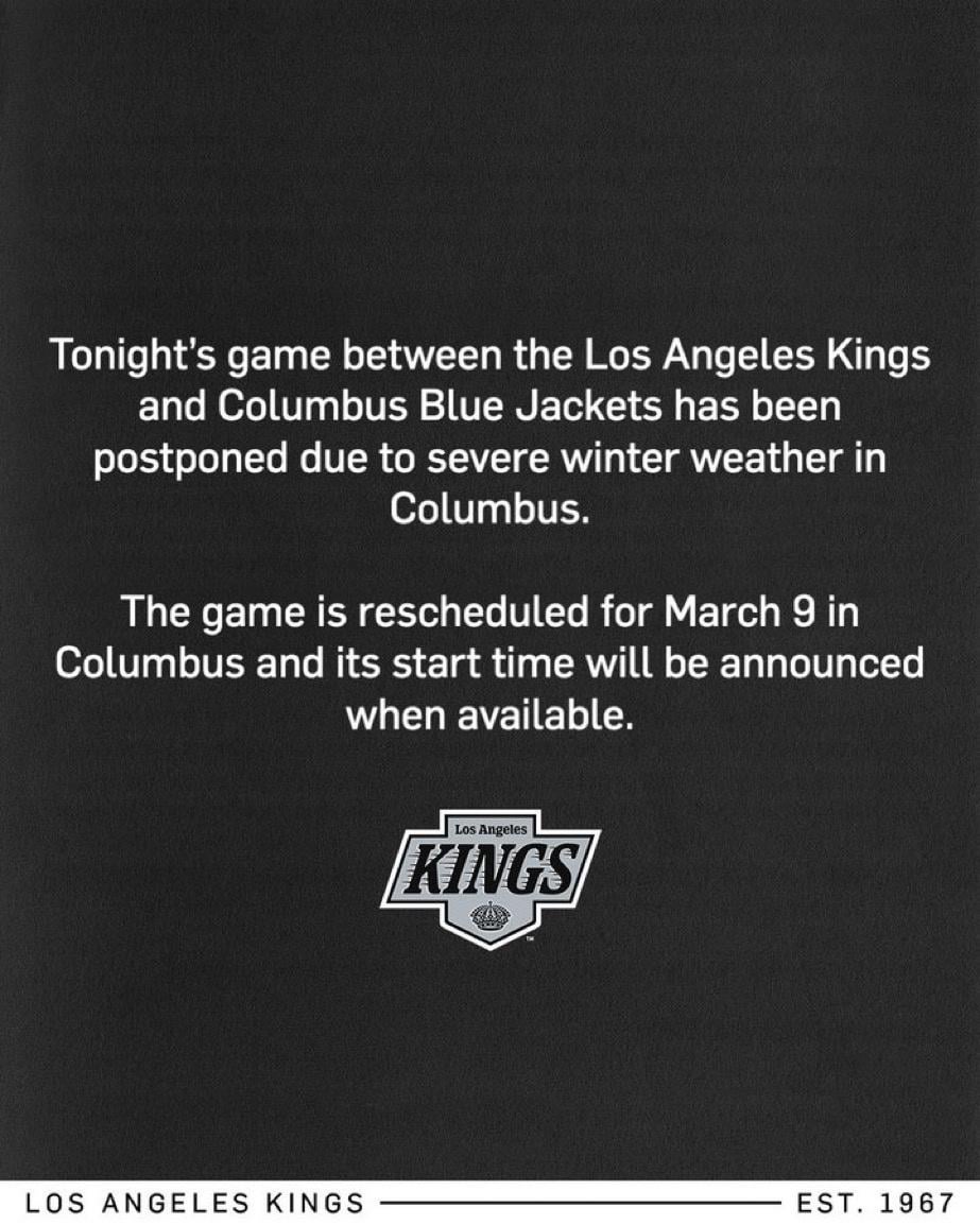 Tonight’s game in Columbus has been postponed due to weather Leave a ReplyYou must be logged in to post a comment.