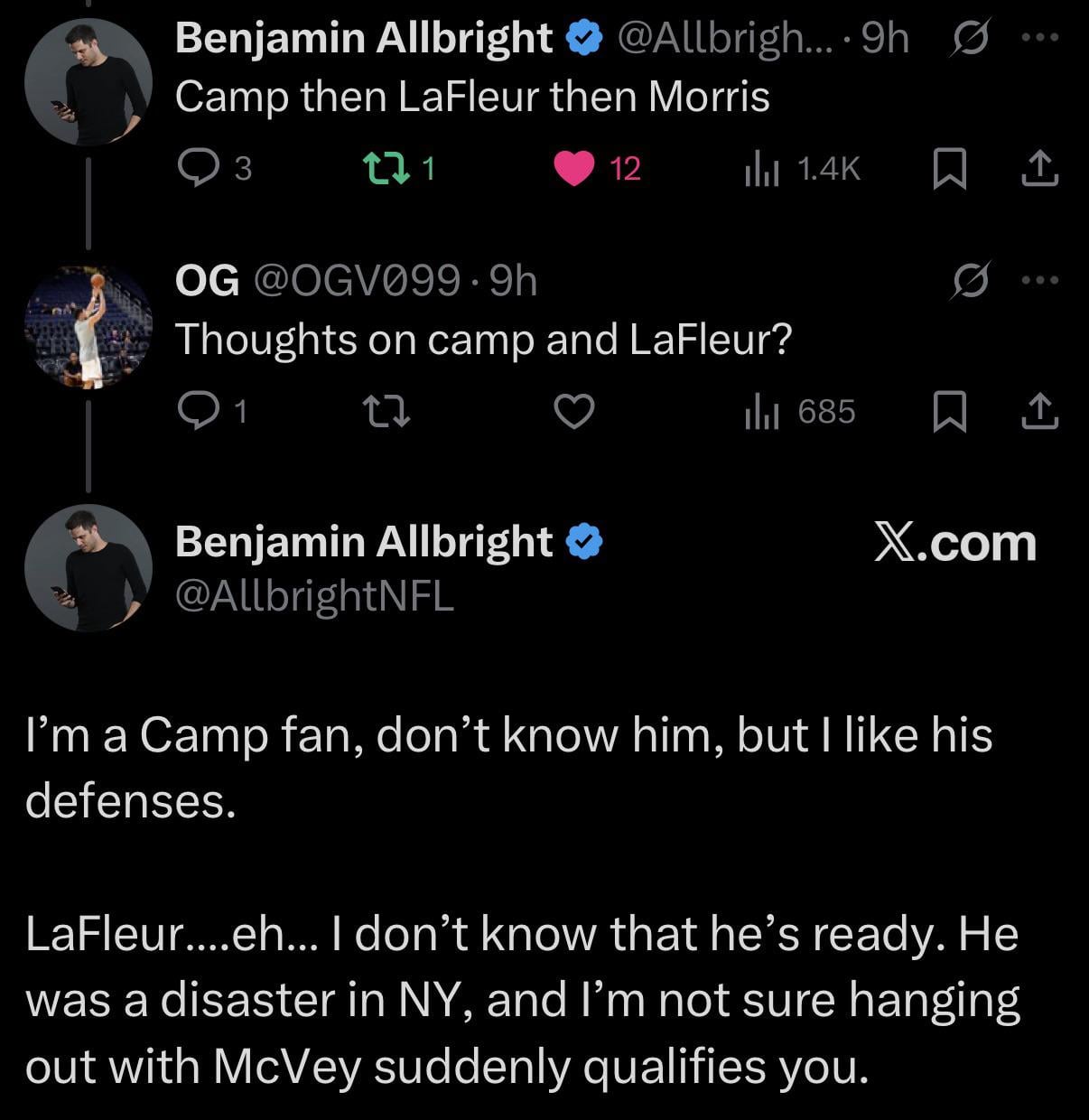 He also predicted us to hire Arthur Smith and then the infamous VJ. I wouldn't have as much of an issue with this if he didn't present his (often wrong) opinion as fact. Constantly gaslighting on Drew Petzing being better than he actually was, Gannon's job status and