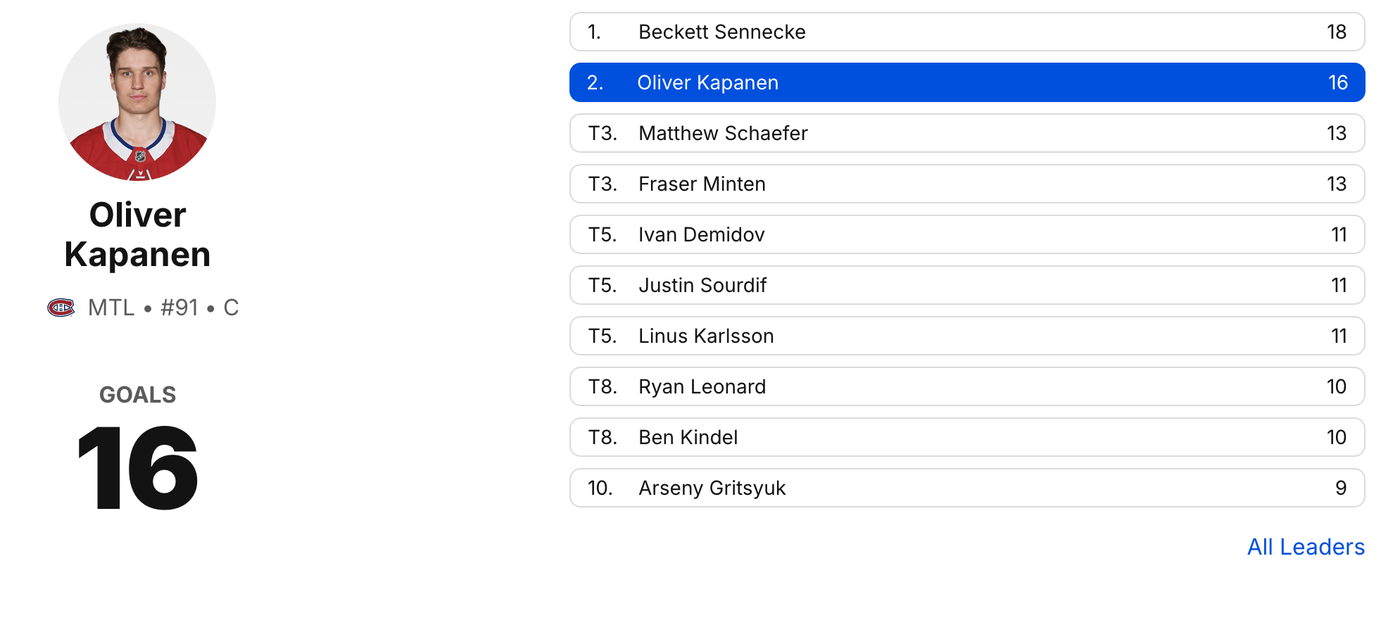 Please share your positive energy so that Kapanen takes back the rookie goals lead