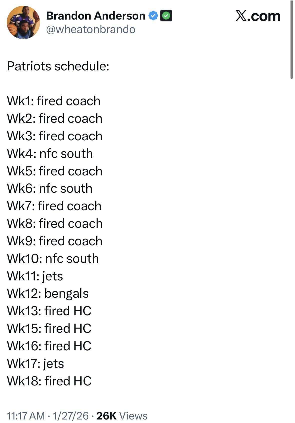 Well. They still better show up and play. Cuz we know that the Patriots HC wasn’t fired. He can coach his ass off and will have his team ready