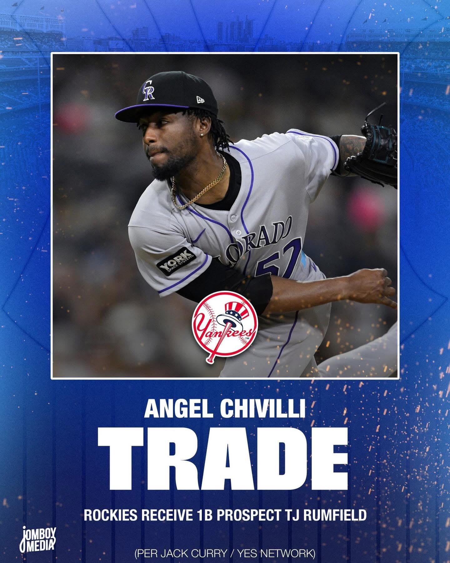 1 for 1 trade: The Yankees acquire Angel Chivilli from the Rockies. Colorado gets 1B prospect TJ Rumfield in return. 9 comments I know I’m late on these. I promise that I try to get these posted as soon as possible! I wonder if you’d be happier to leave Coors as a pitcher or more intimidated to be moving to the Bronx? Young kid. Hopefully we can develop him Wtf are the Rockies doing Should’ve been a Mariner OOTP Trade! Rockies are rebuilding their rebuilding This is the move that will push the Yankees over the top I’m sure. We’re saved Leave a ReplyYou must be logged in to post a comment.