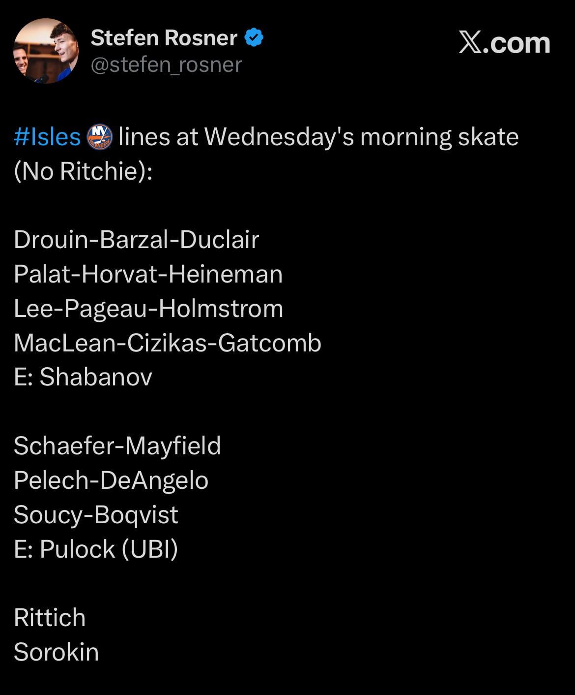 Lines are a little wonky due to injuries and I guess seeing if Palat can find anything with our top guys before settling further down in the lineup. However once Ritchie ,Pulock, and hopefully Shabanov are back in the lineup it’s going to be a group that’s damn solid. Probably the first time since the Romanov injury that we’ll have a lineup of 18 guys that are definitely NHLers.