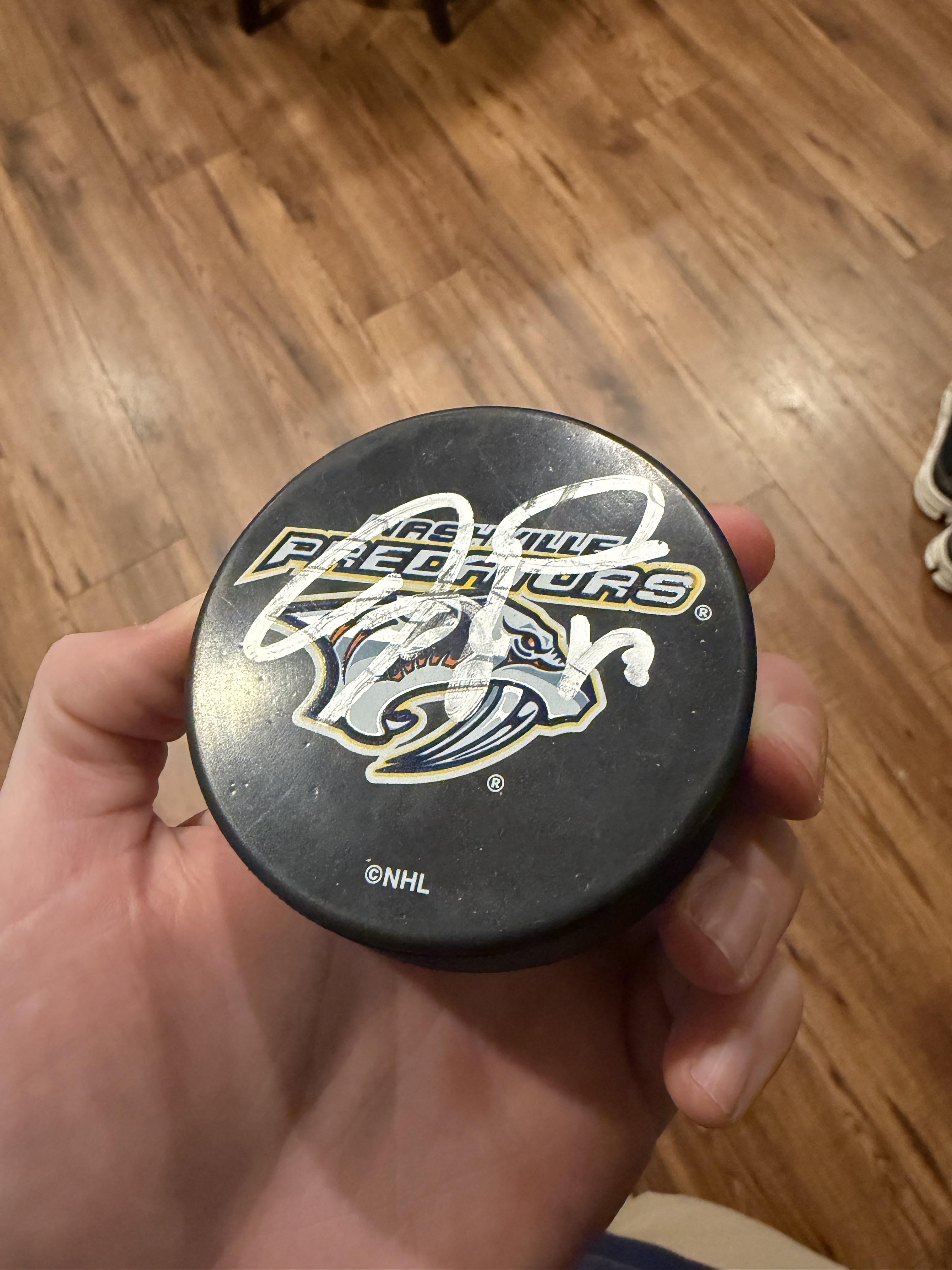 Anyone have any ideas on who this could be? 3 comments David Legwand? JP Dumont? So I think this is Jason Arnott. It’s a bit smushed and hard to make out, but the J makes the left side of the A in some of his signatures. example: [here](https://shop.nhl.com/new-jersey-devils/autographed-new-jersey-devils-jason-arnott-fanatics-authentic-2000-stanley-cup-champions-logo-hockey-puck/t-25260757+p-6920814893152+z-9-4143670421) It’s somebody on the 2008/9 roster but it’s not any of the other names with J. Leave a ReplyYou must be logged in to post a comment.