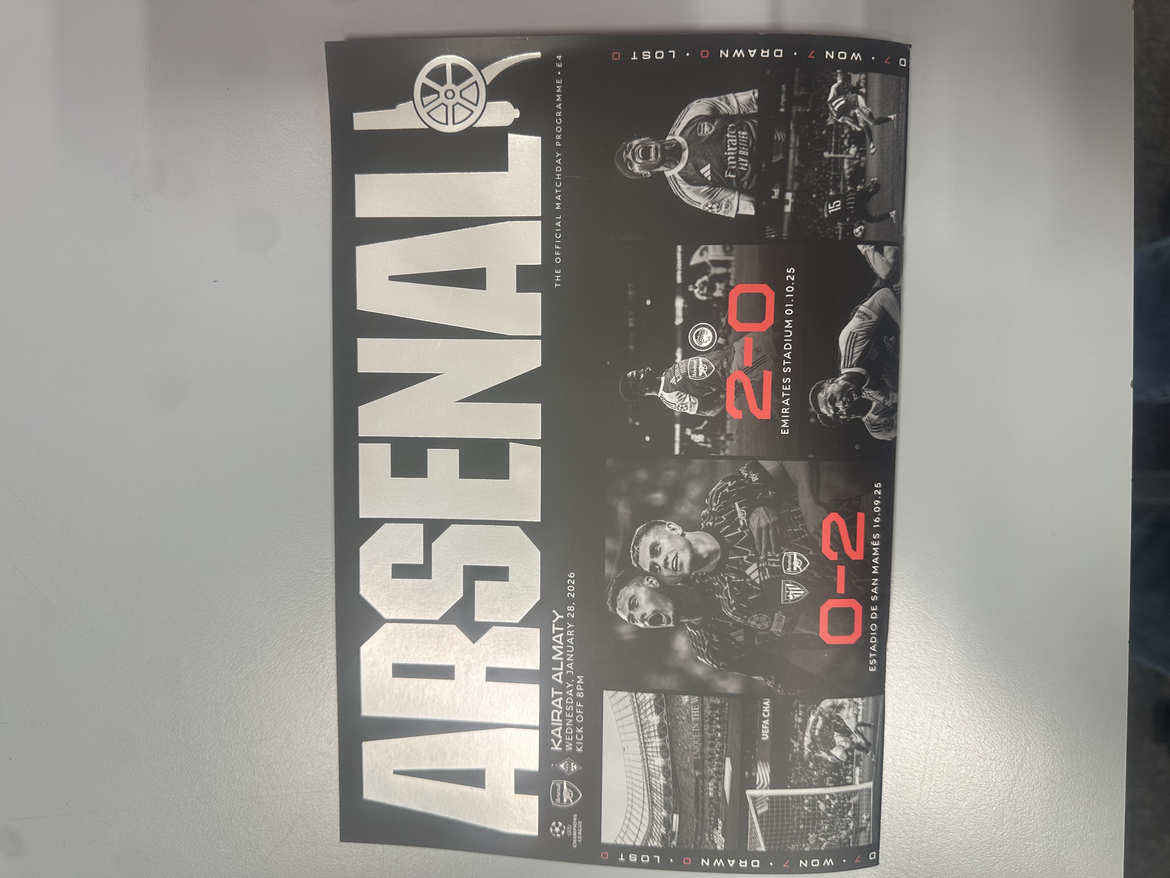 Arsenal are reminding fans of their Champions League record on the front cover of the programme….