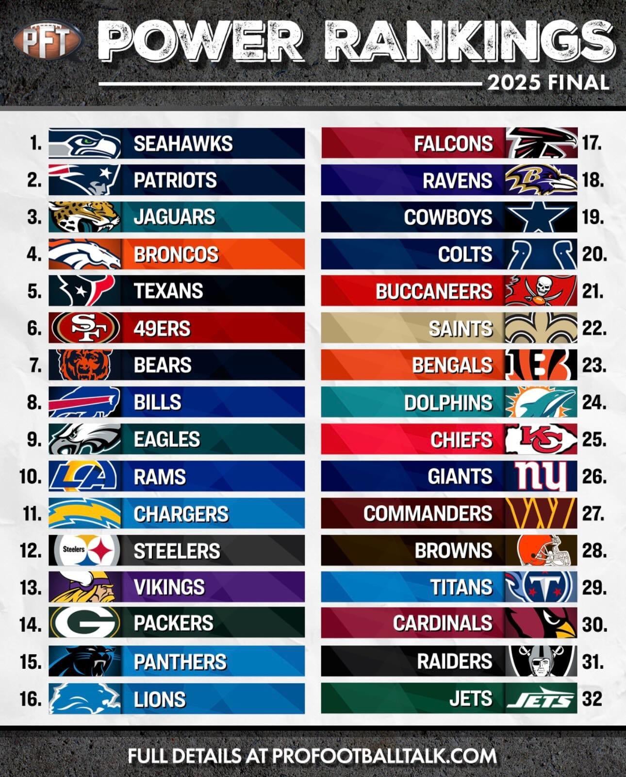 Pro Football Talk Final 2026 NFL Power Rankings: Jaguars #3