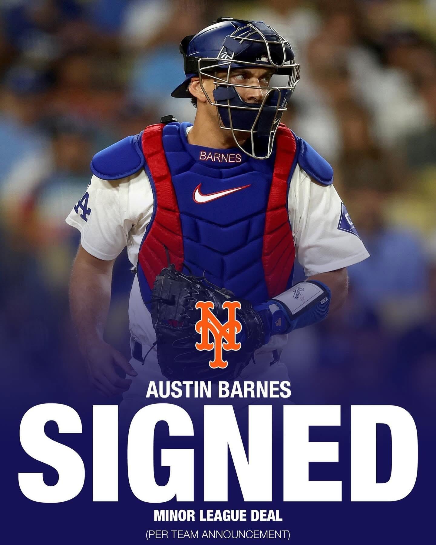 Mets sign longtime Dodgers catcher Austin Barnes to a Minor League deal. 7 comments Good veteran leader to have in the clubhouse. I hope he makes the team. He knows where all the treasure is buried Get a little bit of that dodger magic!! Lol Barnesy is one of the good ones!! Congrats to the Mets!! Piazza, LoDuca, and Barnes. Can we trade Kevin Parada for a recclamation arm (like a 23-24 year old High-A or Double-A pitcher with upside that just hasn’t put it together yet)? Kid is not gonna make the league, he’s like a Patrick Mazeika with less magic Dodgers, watch out! Leave a ReplyYou must be logged in to post a comment.