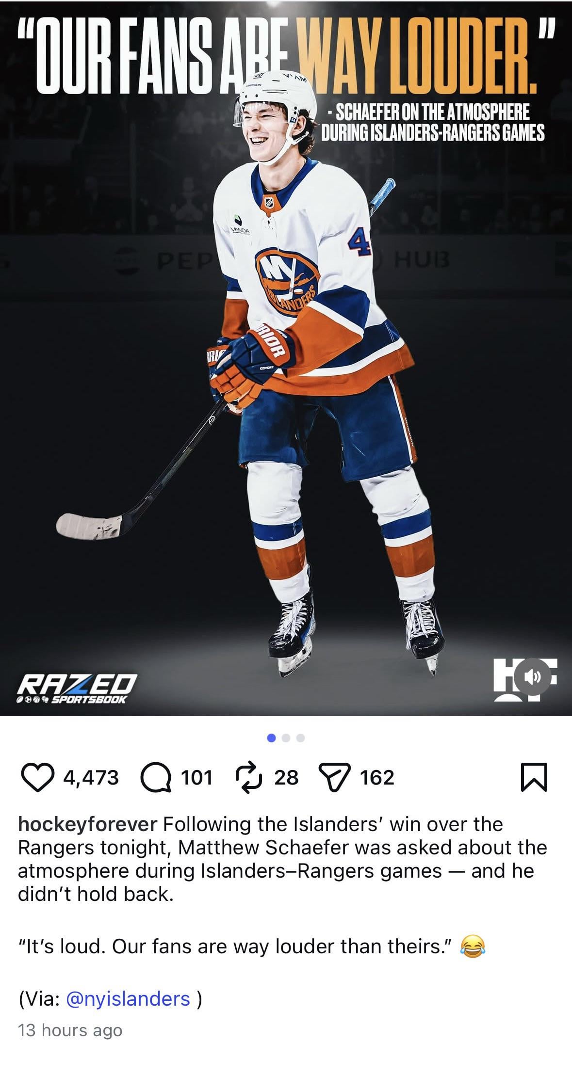 This is what I like seeing really, they understand and embrace the fandom around the team as well. Crosby and Ovechkin did this for their teams respectively, Schaefer is doing that here. He’s a rookie but he possesses a veteran spirit.