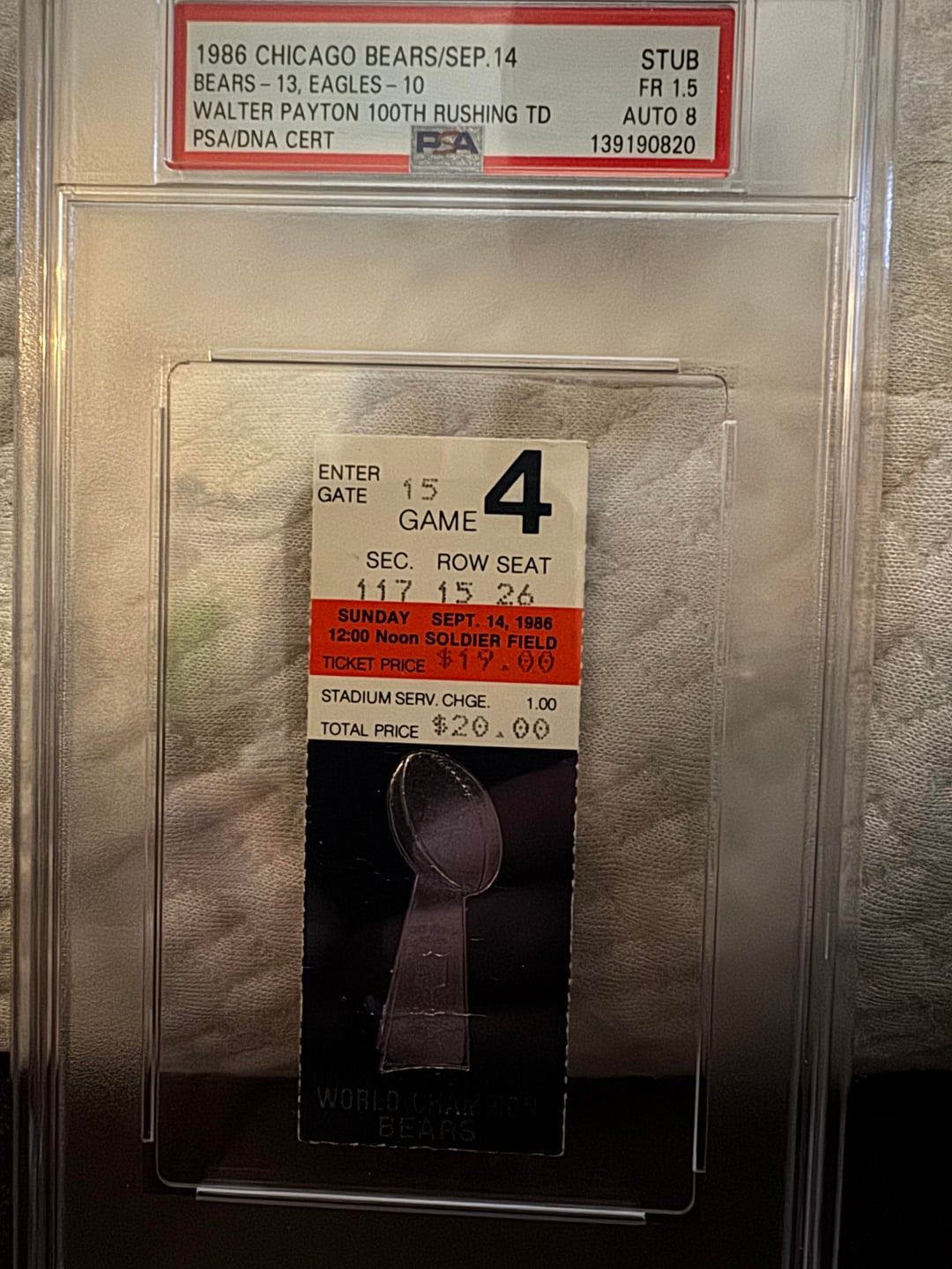 very expensive but thats now the price of the ticket + more. thats a need when raw auto items are involved, get it authenticated! this has the extra details too like walters 100th rushing td just adds to the lore. i love it graded man, id say money well spend