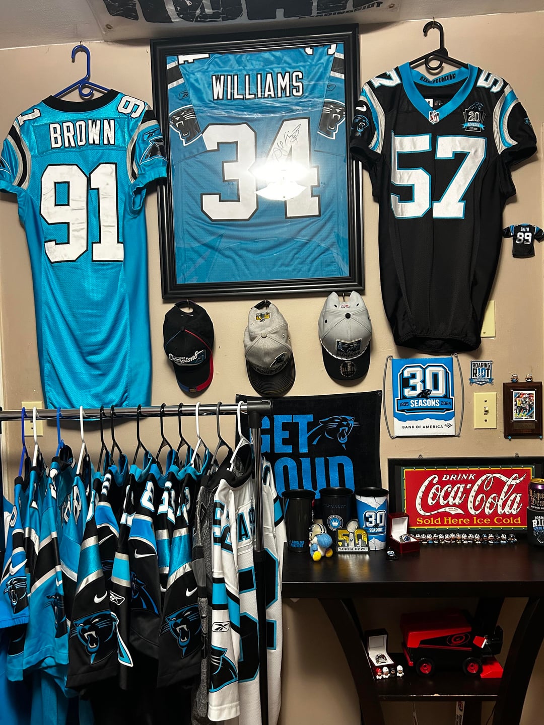 Is my display shelf? This is my (sadly small) panthers section in my room. 4 comments Looks great imo Isn’t Pepsi historically their drink sponsor or something? That’s way more than any average fan. I know other guys have bigger ones, but that’s the tip of the fan base. I love looking at yours. Can I touch it? i mean, i *can* see your nuts and bolts Leave a ReplyYou must be logged in to post a comment.