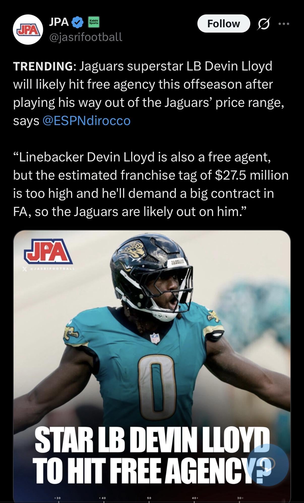 Now that we have a new DC, please give him some difference makers to fix that side of the ball. Signing Lloyd could be step one