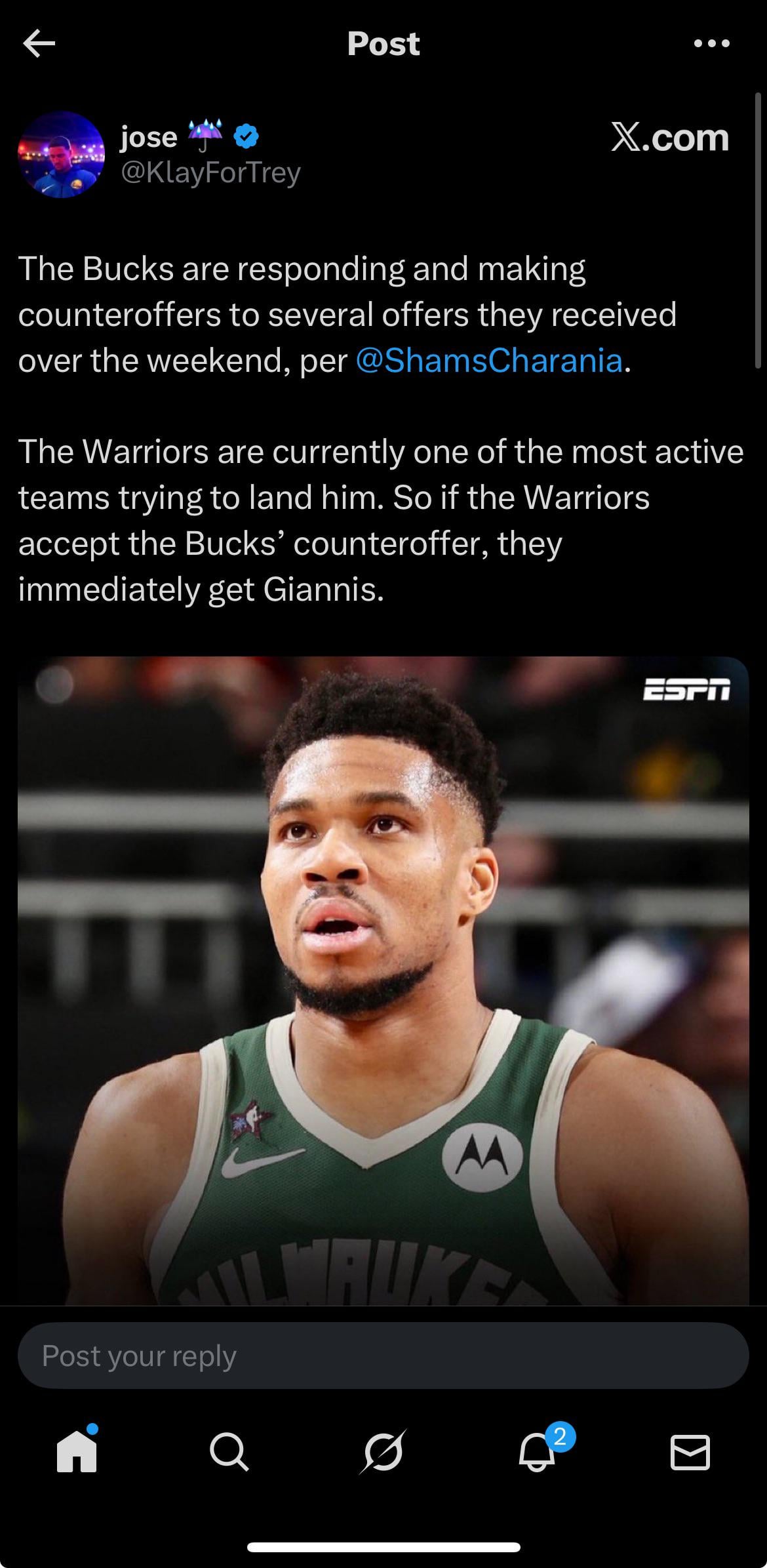 2. Who is this guy? Seems like a serious scoop for an unknown reporter. This one doesn’t pass the smell test for me. If the Warriors recieved a Milwaukee counteroffer that doesn’t include Steph, I feel like it would’ve already been done.