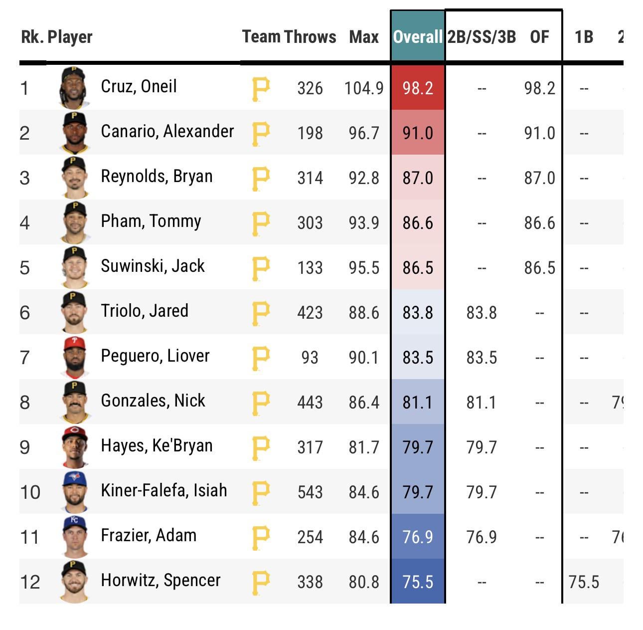 A lot of talk about Nick Gonzales not being able to play short because his arm strength, while I agree obviously he has a weaker arm we did just sit through an awful lot of IKF at short who finished below him last season.
