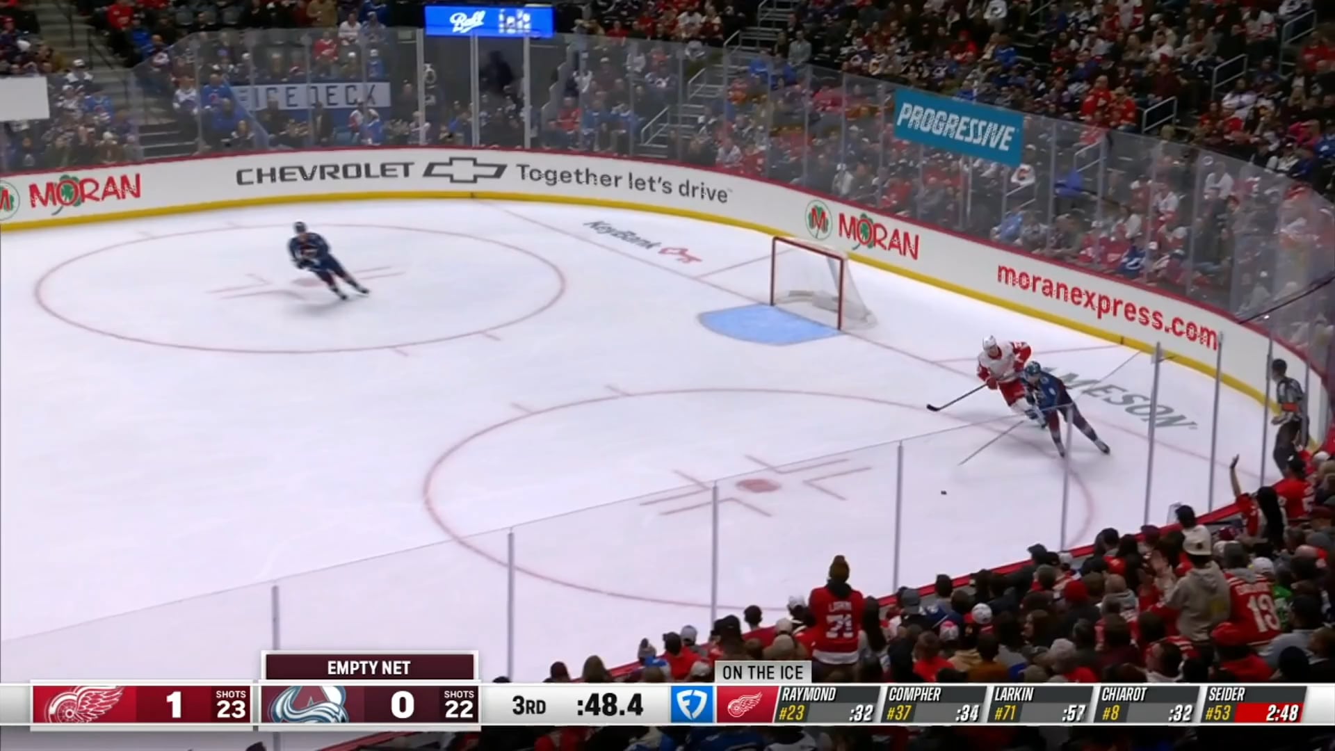 [ DET 2 – COL 0] Raymond gets his 60th point and 19th goal on the EN goal to seal the deal in Colorado
