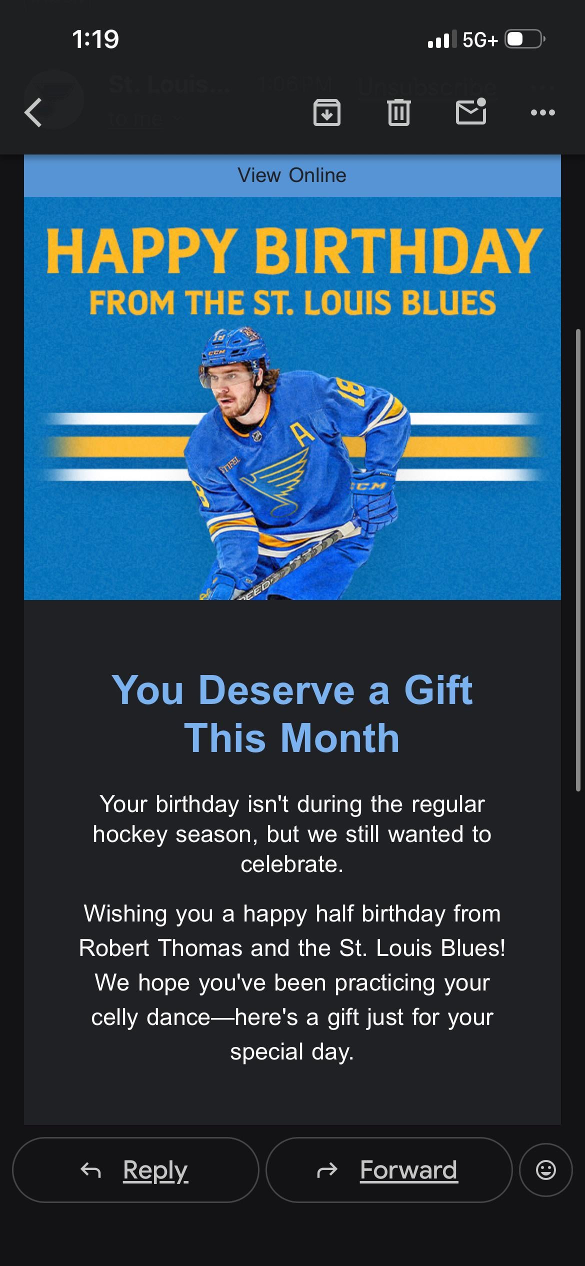 2025 I got Schenn. 2024 is Oskar. 2023 is Colton. That’s how far back my Blues day messages go. I think it’s just random