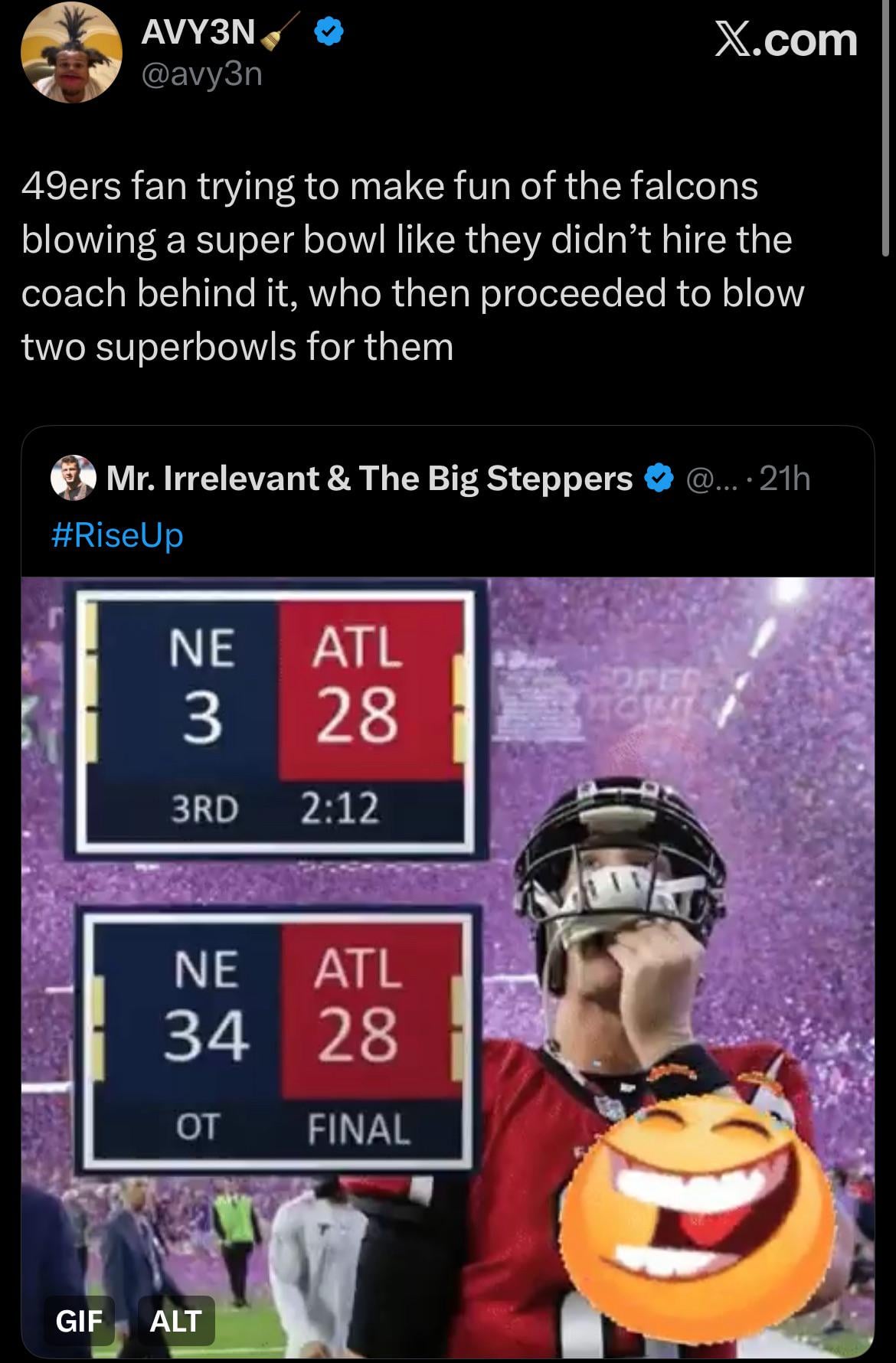 I hate Kyle Shanahan 5 comments Damn, the offense straight up let them score 31 points. 49ers are just the cowboys with superbowl losses instead of playoff loses. Good enough to make the big game. Not good enough to win it. Thrice. I feel for the guy but I do still find it funny. Yes. Allow me to forget that we too hired one of the coaches behind that choke job. Kyle is like the best and worst coach all at once lol Leave a ReplyYou must be logged in to post a comment.