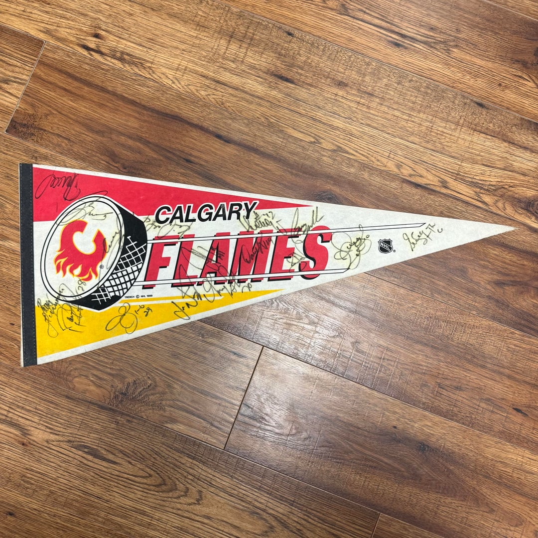 I need some help with 5 signatures on this pennant.. 1 comment 3 is Robert reichel, 5 is Trent Yawney I think Leave a ReplyYou must be logged in to post a comment.