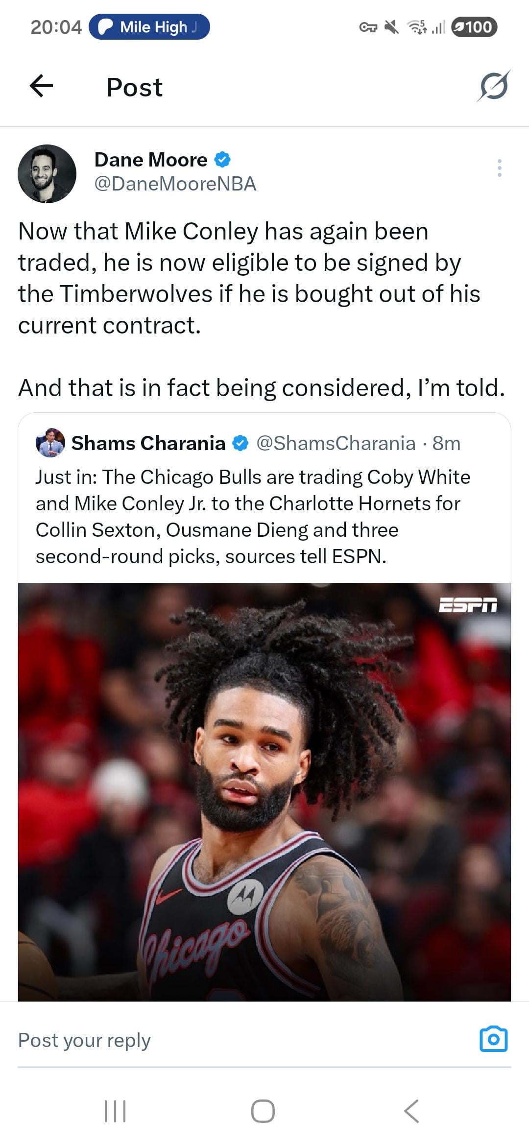 [Moore] Now that Mike Conley has again been traded, he is now eligible to be signed by the Timberwolves if he is bought out of his current contract. And that is in fact being considered, I’m told