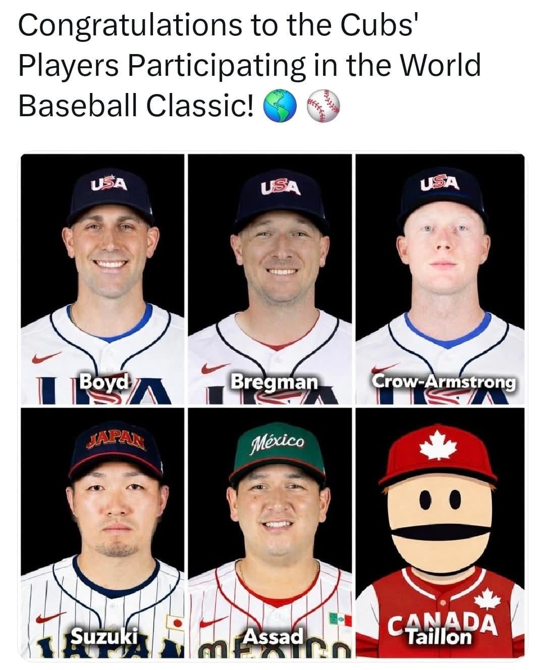 Let’s cheer on the guys during the WBC! 4 comments Aww, come on guy! Javier Assad looks like he’s probably a really nice guy when he’s not whipping a 93 mph fastball down your gullet. Never knew Taillon was Terrance and Phillip from southpark. Wow. PCA really needs some eyebrows. Leave a ReplyYou must be logged in to post a comment.