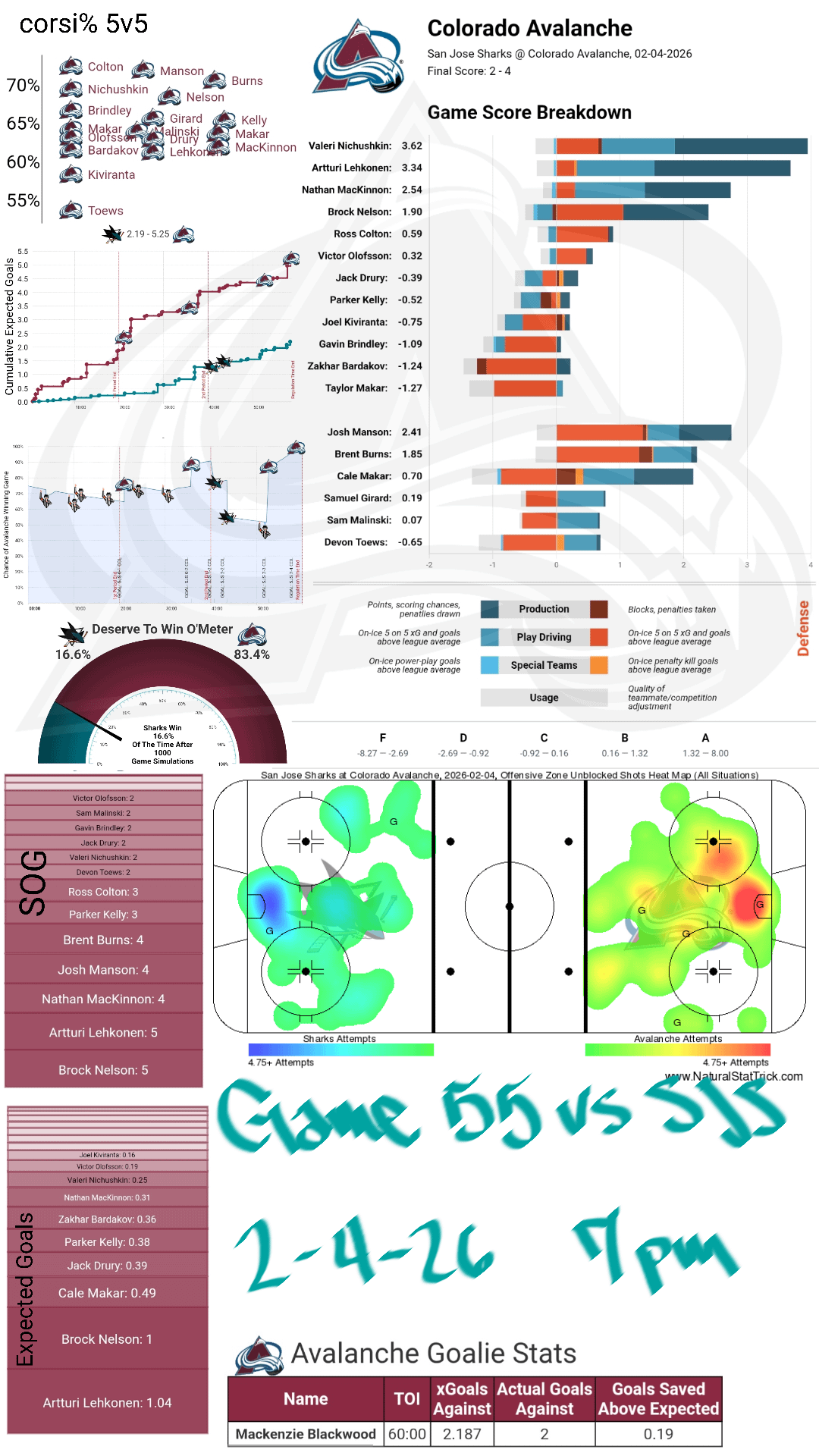 4. Glad the Avs are going into the Olympic break off a win. Hopefully some time off/rest/ playing a different system for the guys going to the Olympics will help reset them mentally for the power play. Gives the coaches a lot of time to go over tape and try and figure out something to get the PP going.