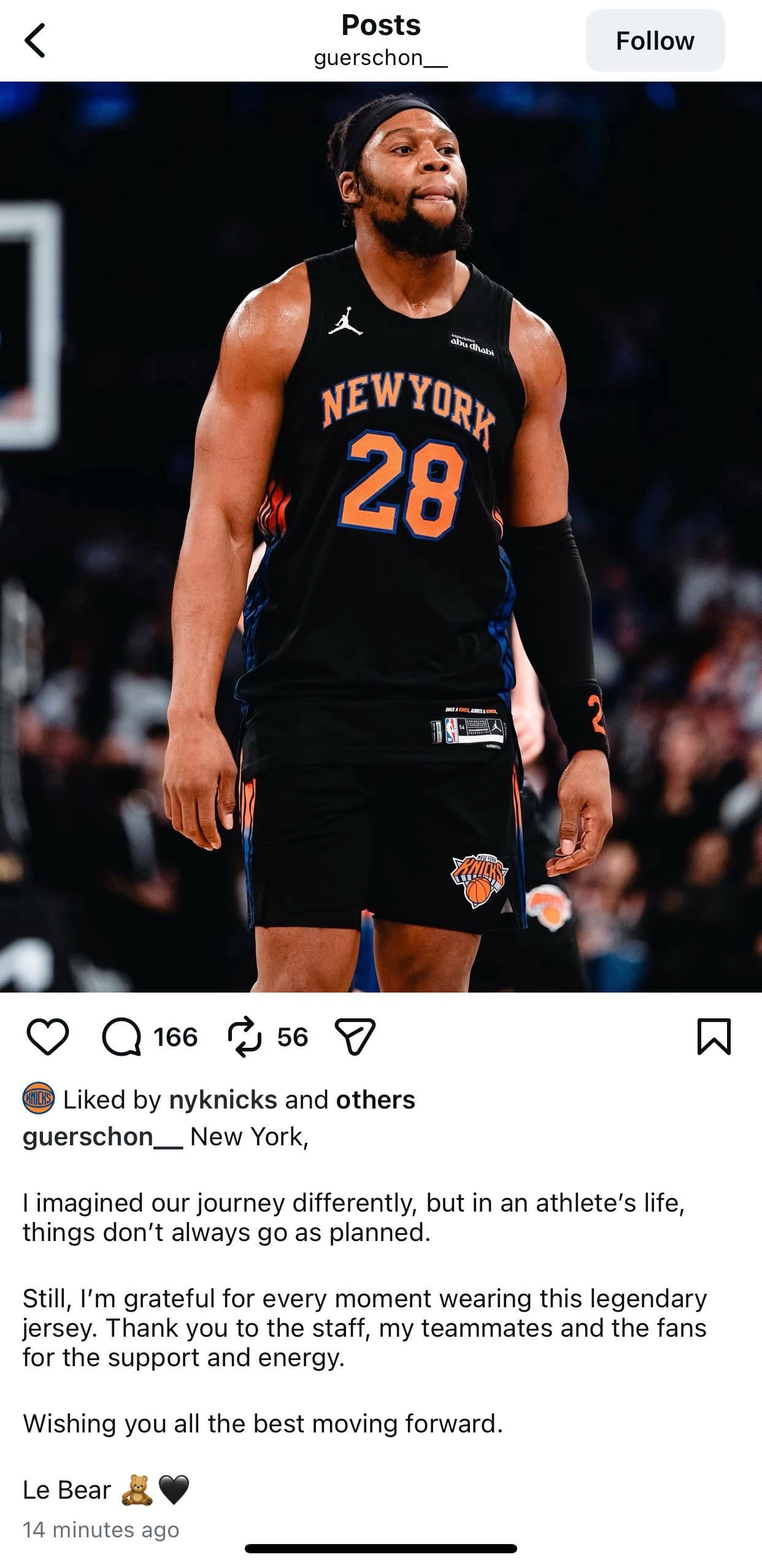 Guerschon Yabusele’s goodbye message to the New York Knicks and the fanbase.