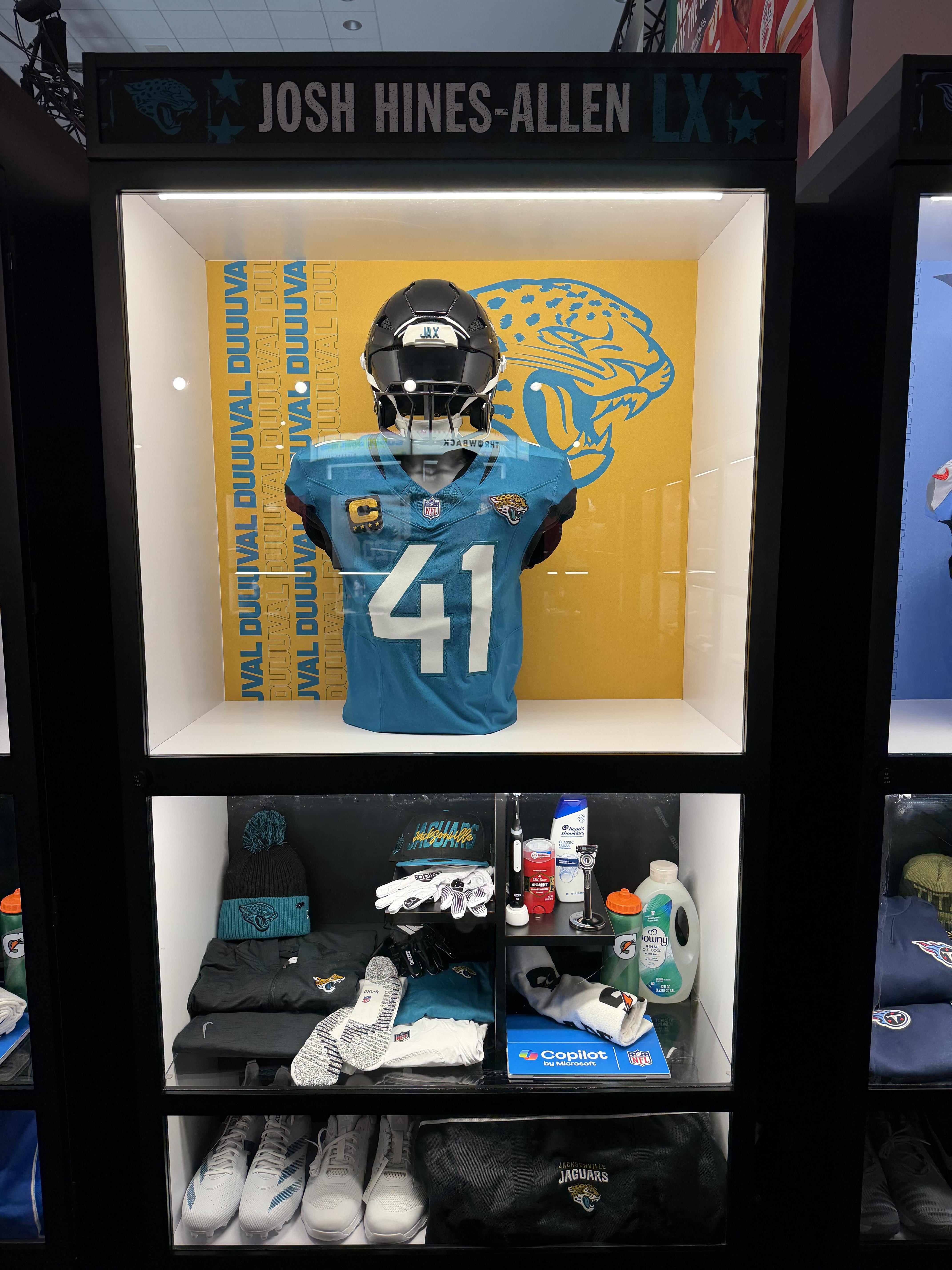 Josh Hines-Allen “locker” at the Super Bowl Fan Experience