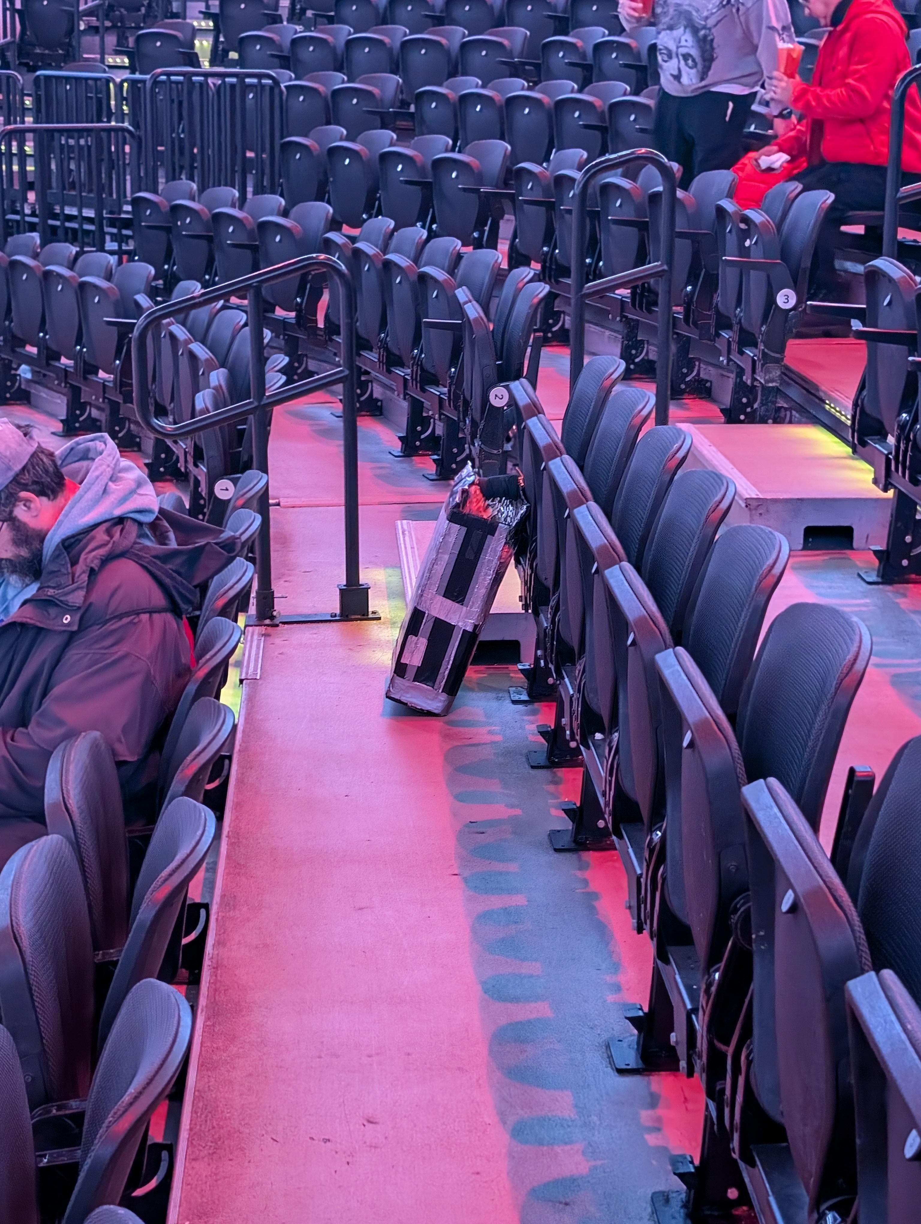 1. Haha. I sat in seat 5 on Tuesday. Amazing view of the game especially for $72. That guy with his toupee/hair dye and vacant stare is interesting.