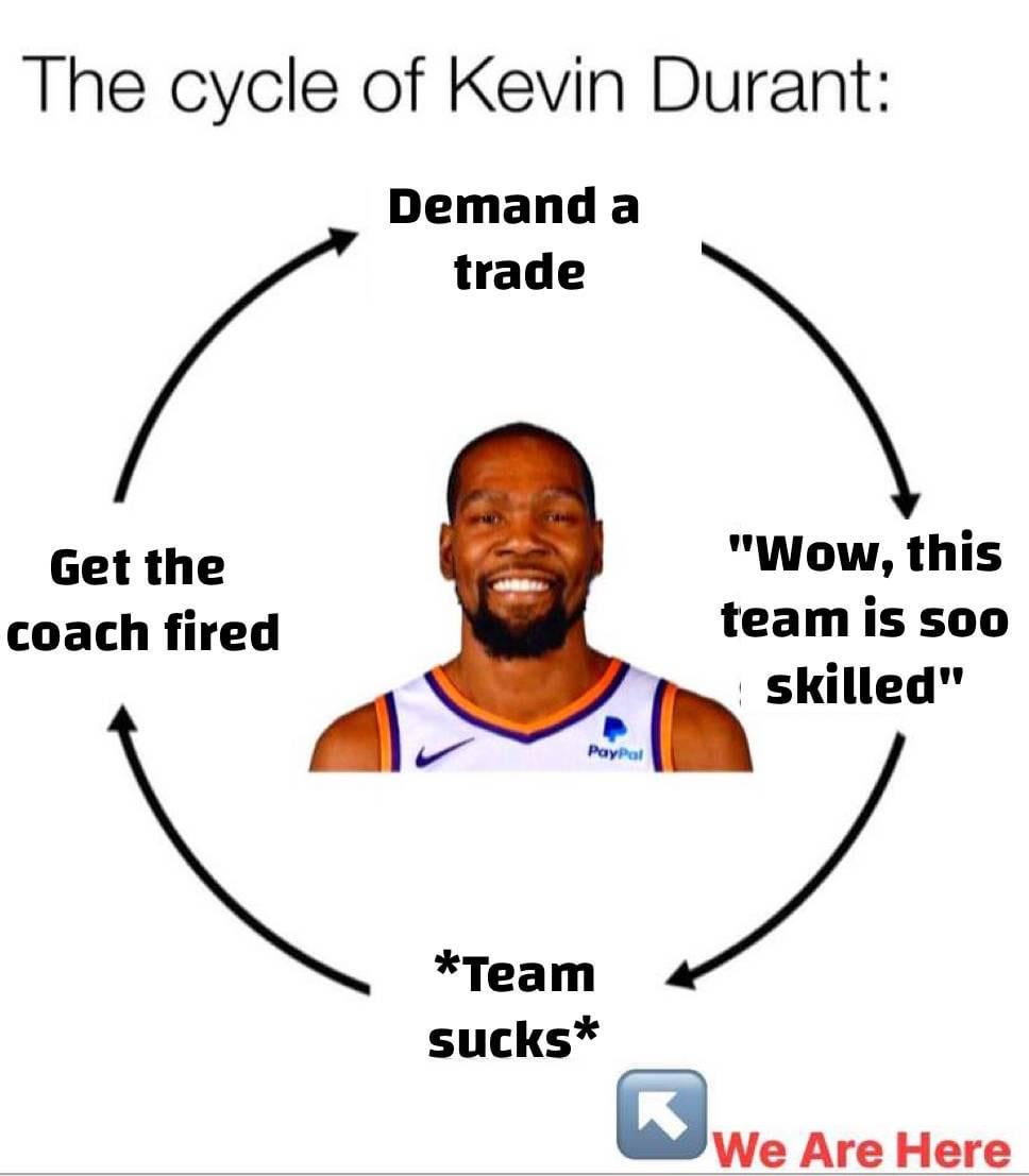 7. Man shut the fuck up 😂 some nba fans can only think memes. We lost our pg right before the season and majority of the team just became drinking age 😭 KD goes into a slump (at the age of 37) and its his fault he cant carry the whole team on his back anymore. Never thought id be defending KD from other houston fans ever but thinking like this is so fucking stupid. Would you like to see our team without KD???