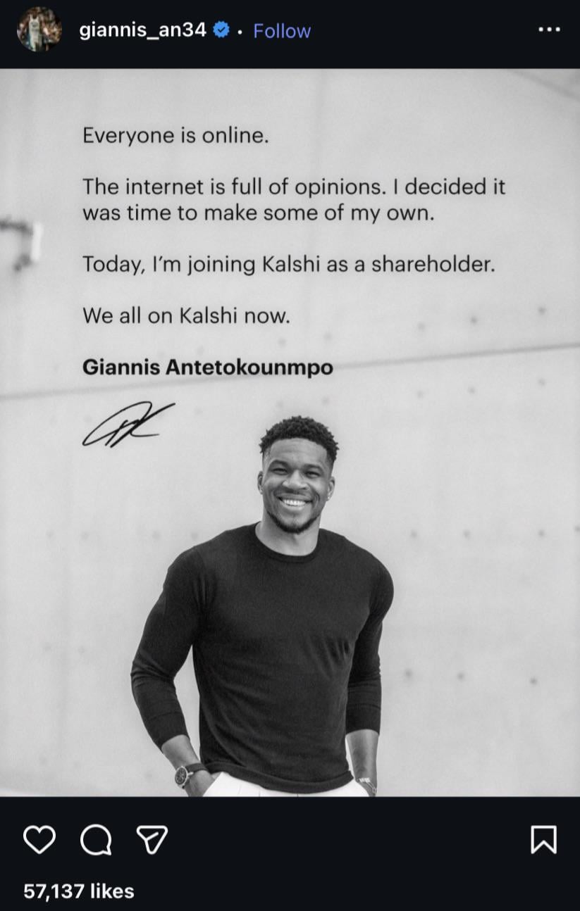 Fuck Kalshi and anyone who supports them. That includes Giannis.