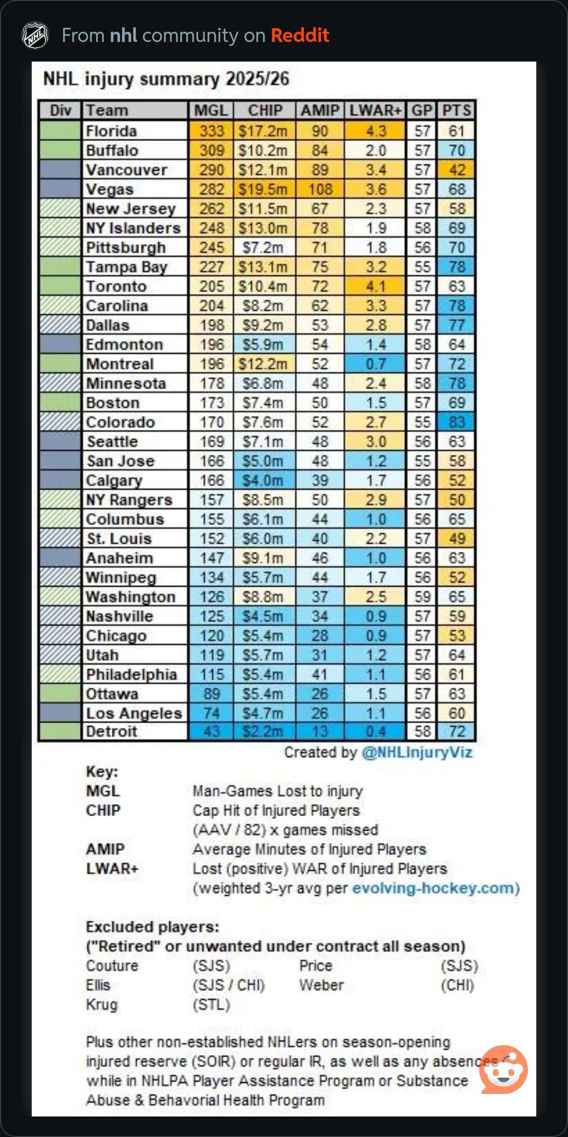 Your graph actually proves the blues took a pretty massive hit from injuries. I think ninth worst in the league?