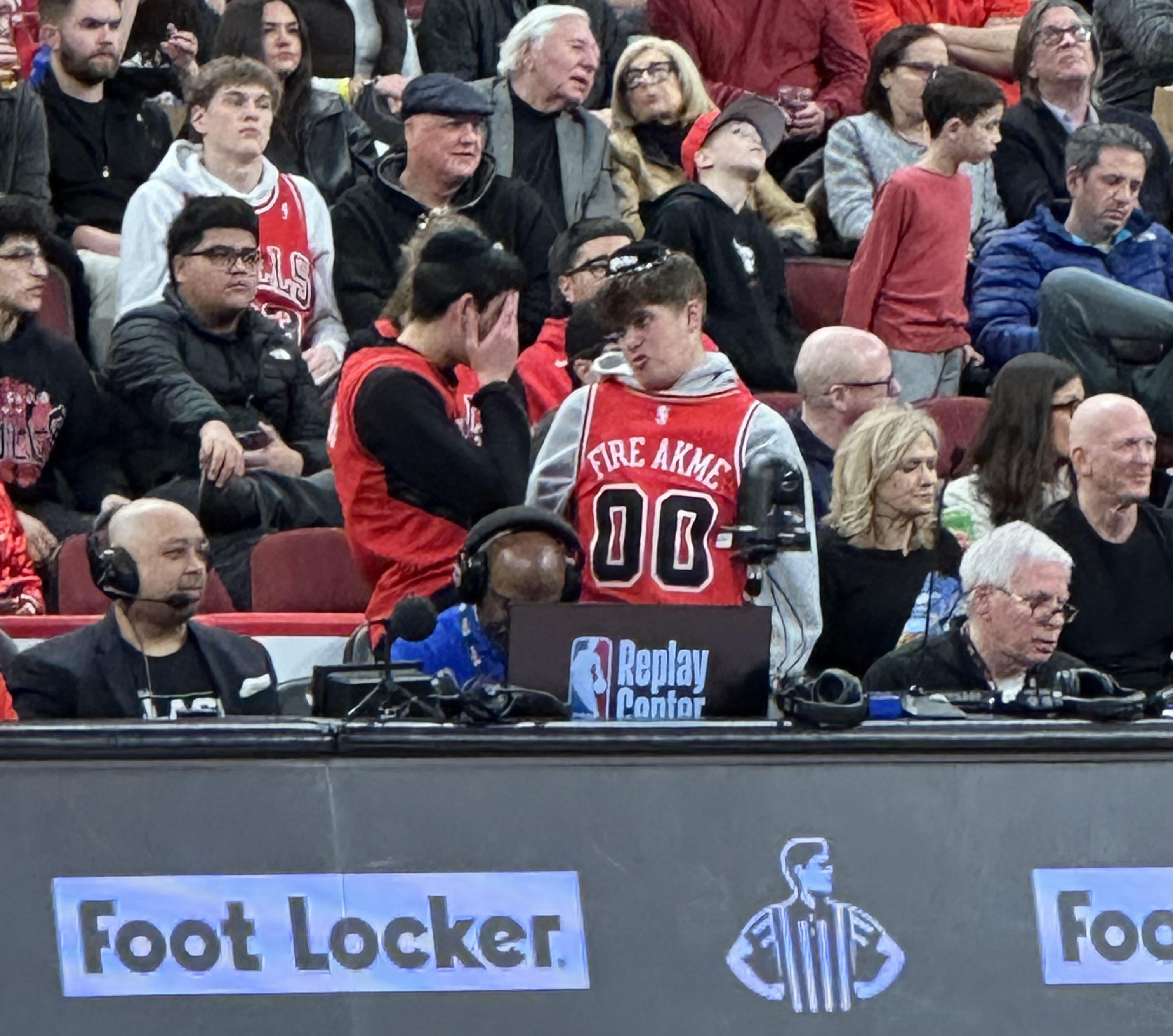 Kid sitting behind the scorers table was wearing this at the game against the Nuggets tonight. Anyone see if he made it on tv?