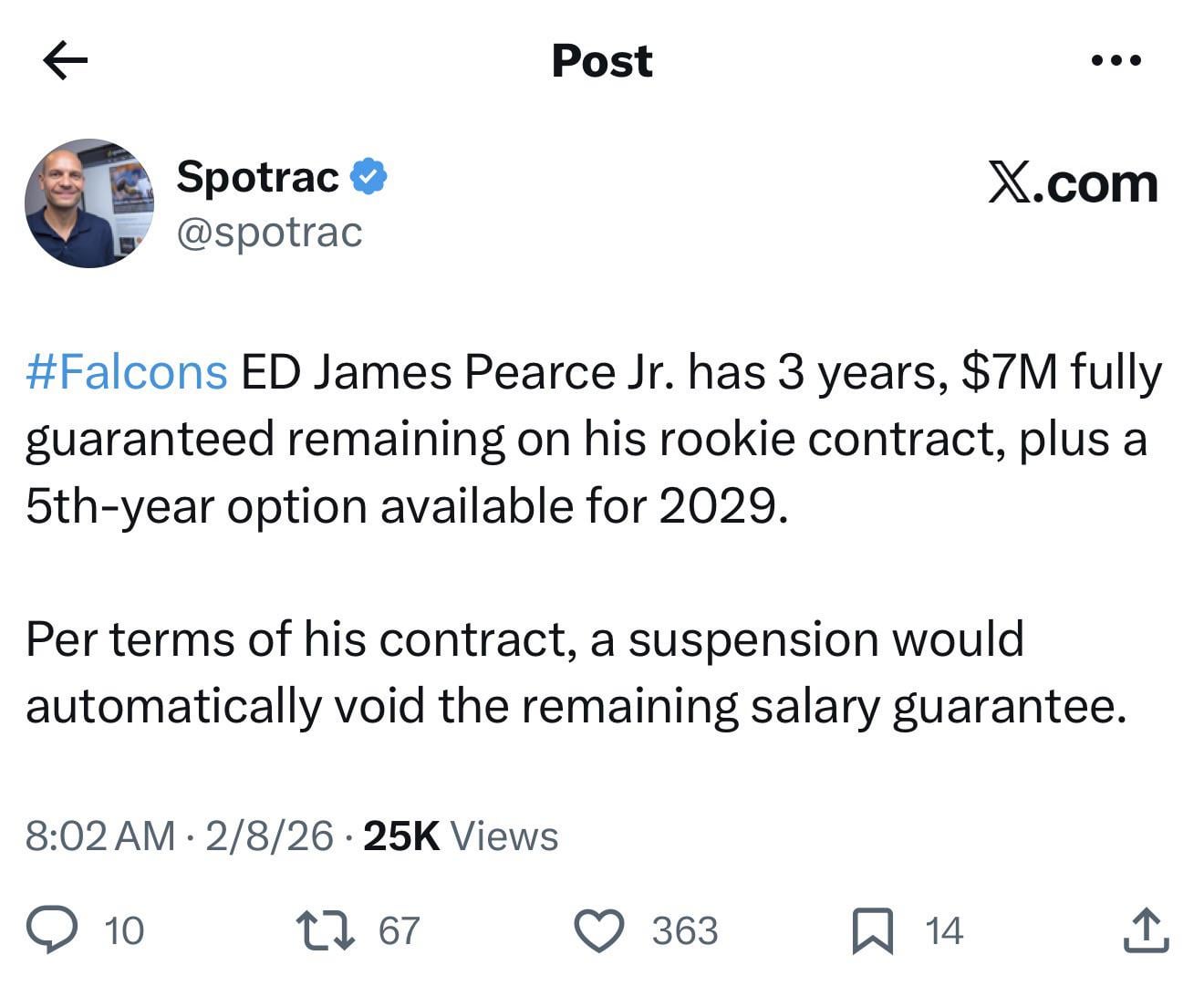 Have you not read the details and the charges that this nigga got?? He hit a police officer. 💀 best believe a suspension will definitely be in place, I really loved that dude but man I can’t tolerate this bullshit. I hope commissioner and Arthur blank chew his ass out.