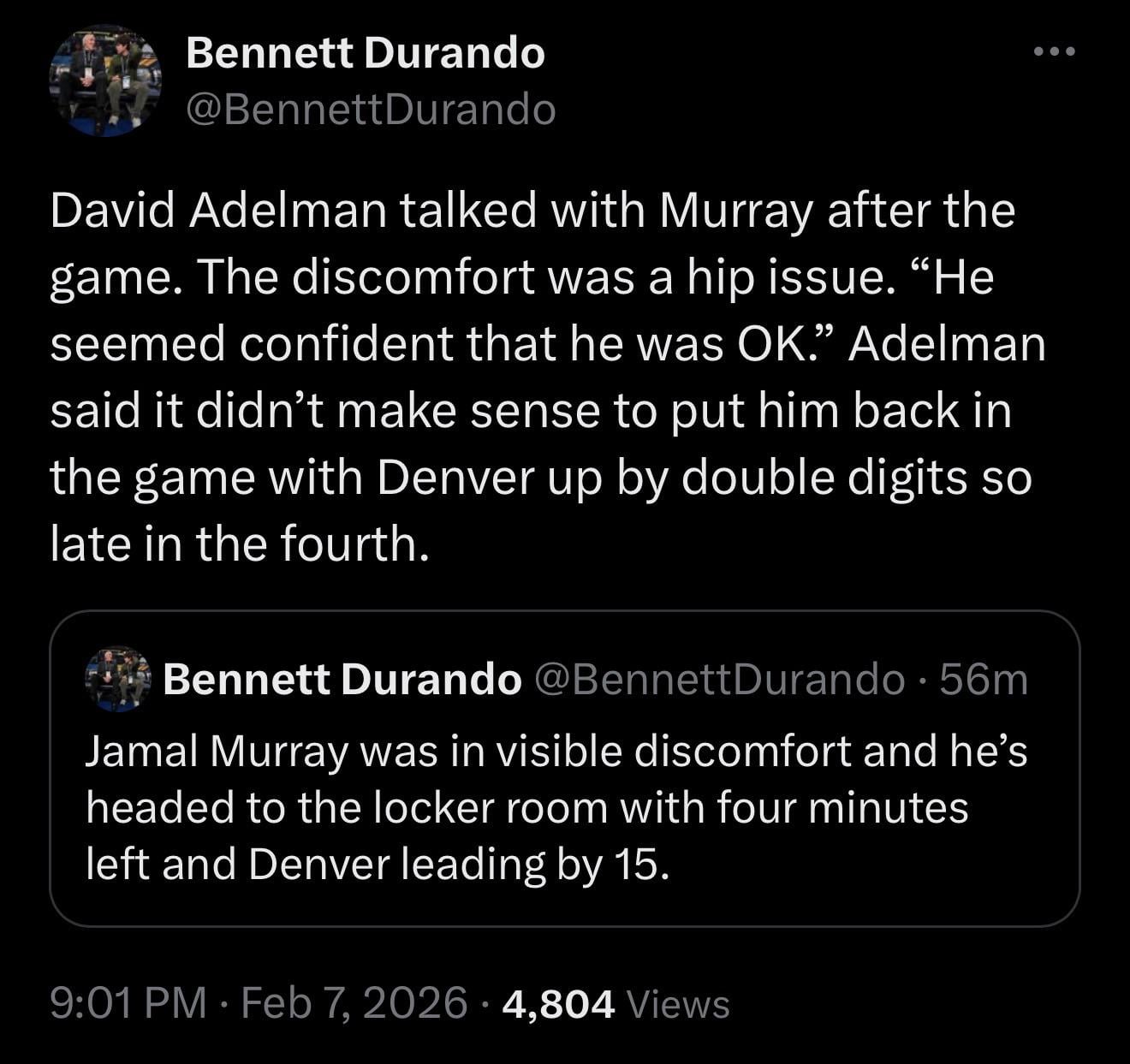 Jamal is ok. He had a hip issue earlier in the season which this probably just aggravated, I think it’s just pain, trust Murray to decide if he can play or not next game.
