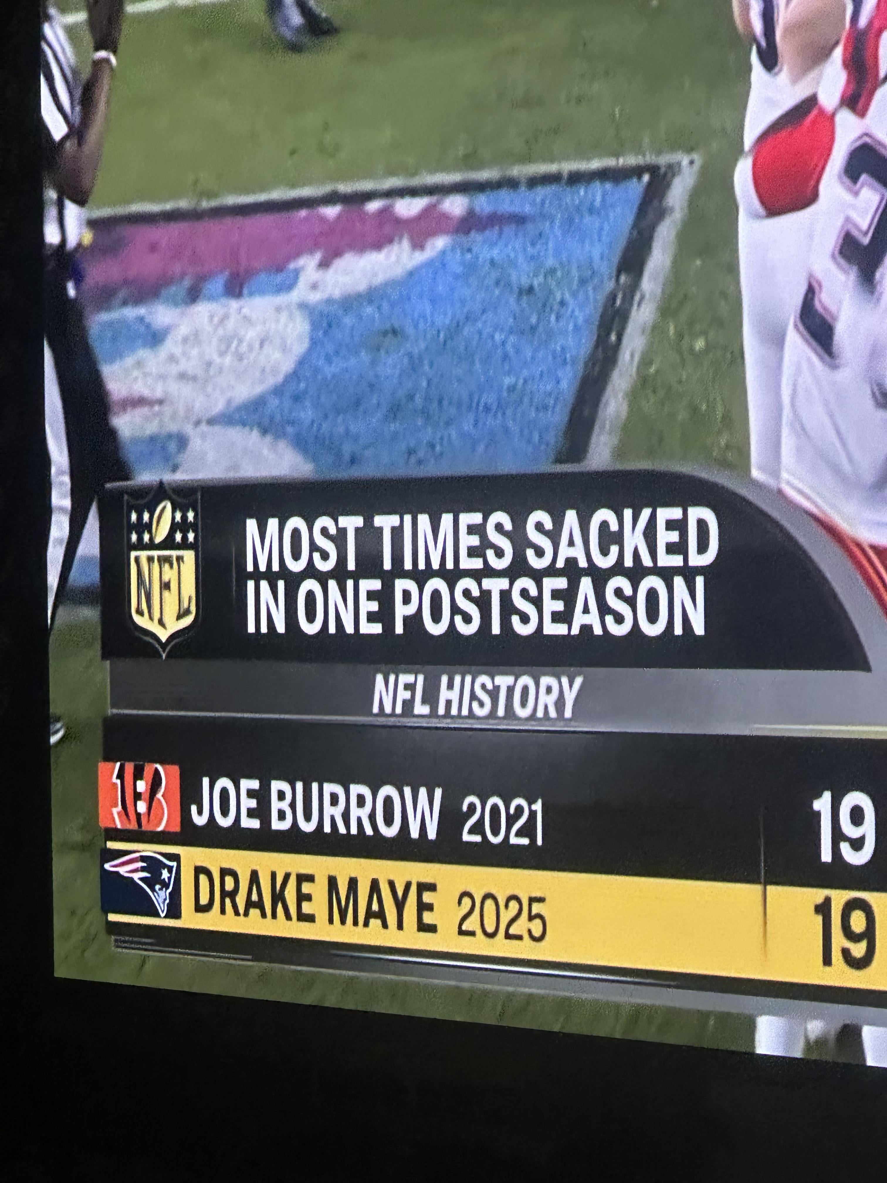 Look what Joe Burrow did with this many sacks compared to Drake Maye. At least he scored a point 😄