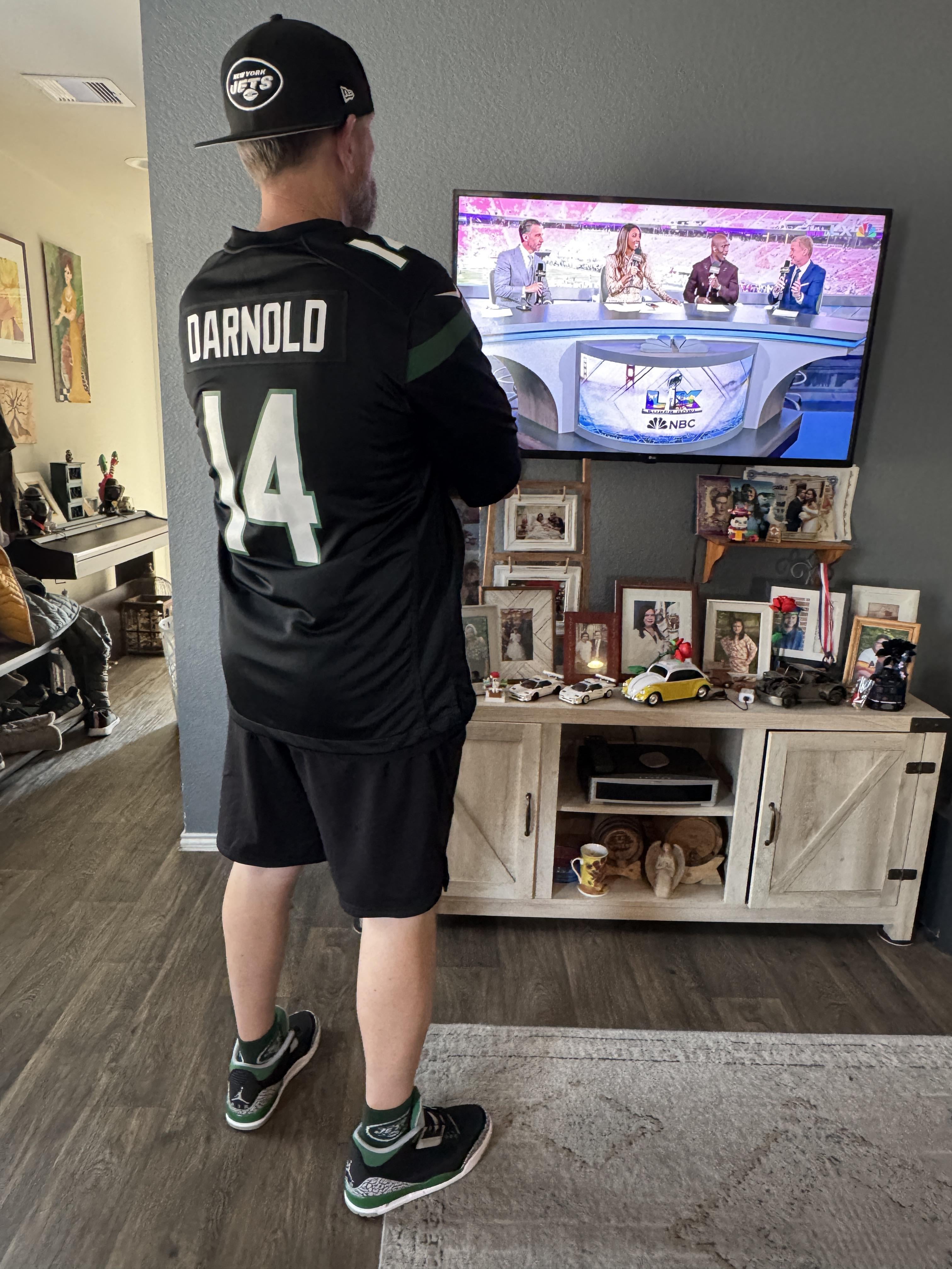 My nephew lives in Santa Clara and can walk to that stadium. He was wearing his Jets jersey…… Mark Sanchez jersey… Outside of the stadium. I told him that is probably the closest a New York Jets jersey is gonna get to the Super Bowl.