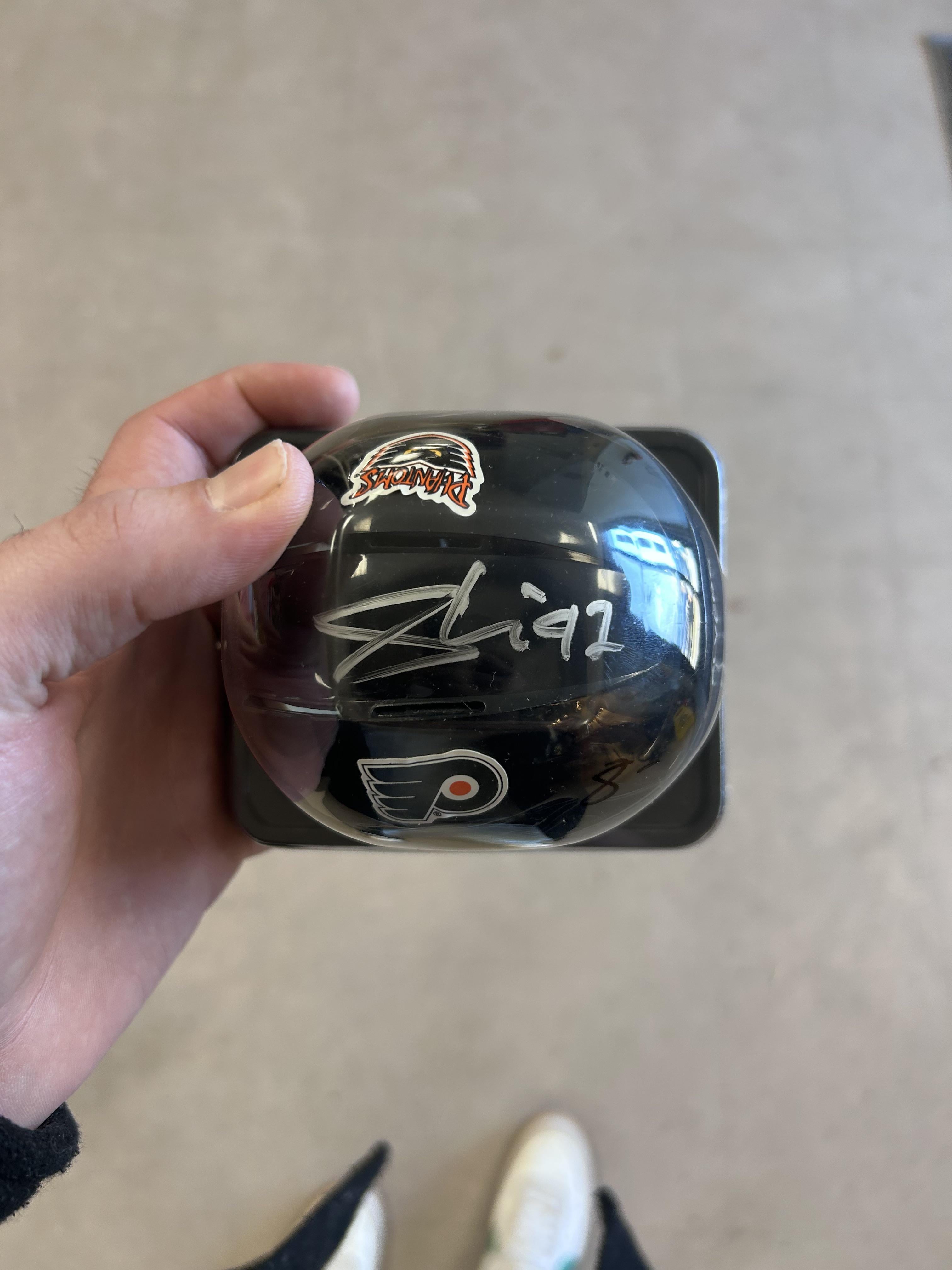 There’s a Phantoms sticker on the side as well. See who played on that team during that era with that jersey number.