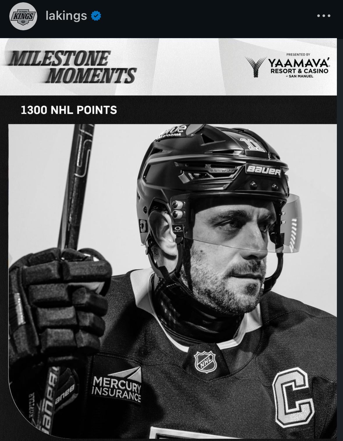 From the Kings Instagram. Kopitar with 1300 NHL Points