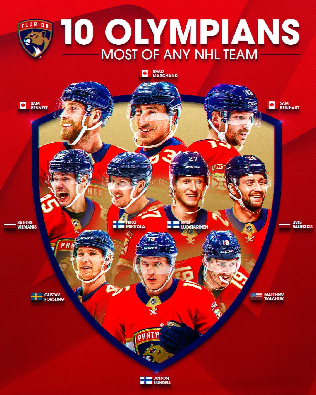 Well, well, well.. Would ya’ look at that 9 comments 12 if Barkov and Jones were healthy Why would Sam Bennett do th…oh wait…🤣 Best team in the league the last few years for a reason 10 players, 5 counties. Solid chance a panther or two (or Three) is going home with a gold medal. Let us pray to the hockey gods for an injury-free tournament. 🙏 The hard works pays off. The players & their families are definitely enjoying it! Now if they can make the playoffs Putting the Canadians on top. Smart choice, cause that’s where they’ll be when it’s all over. USA USA USA Leave a ReplyYou must be logged in to post a comment.