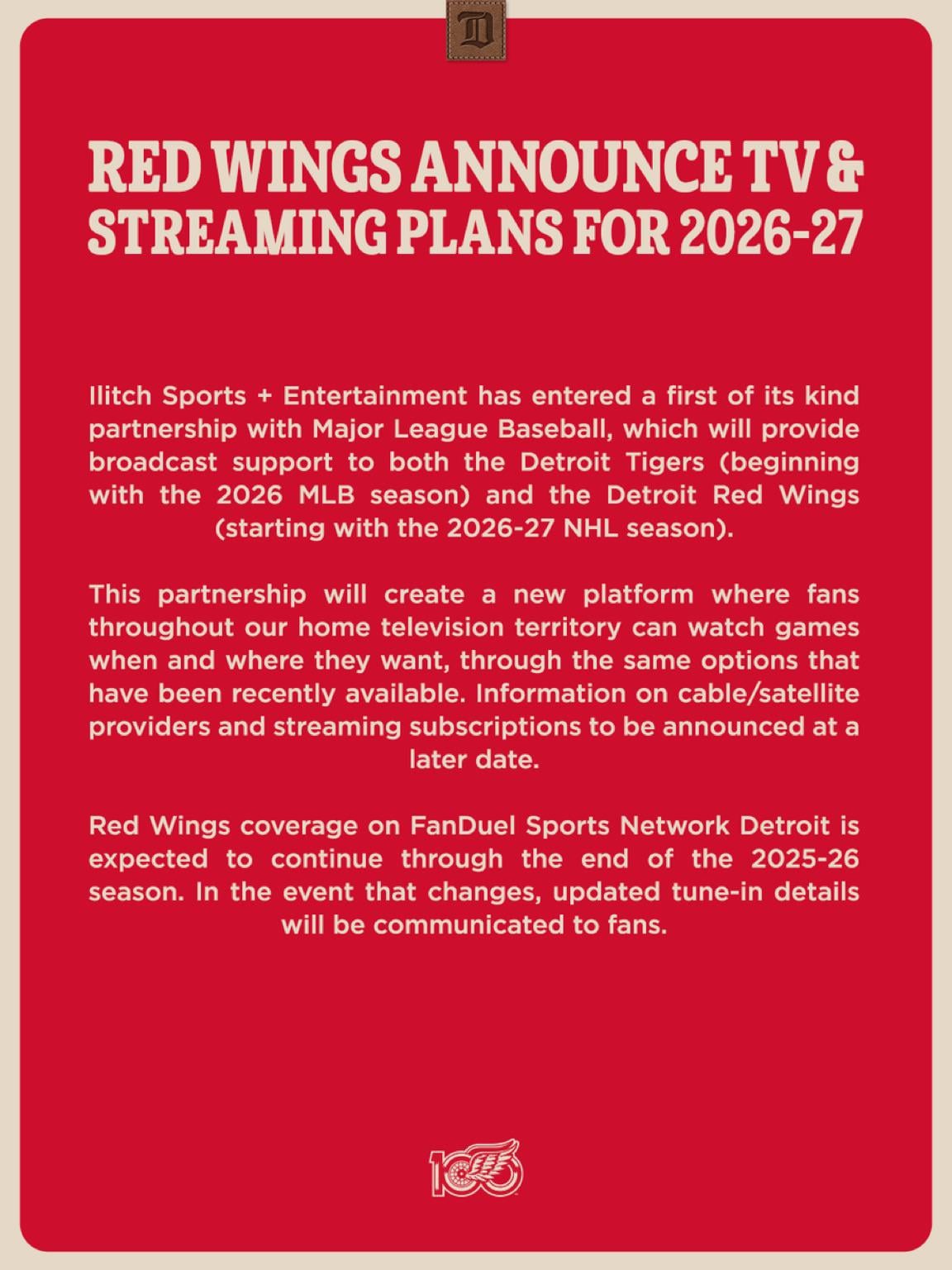As an out of state and not-tigers fan, i hope there’s an option for just red wings games.