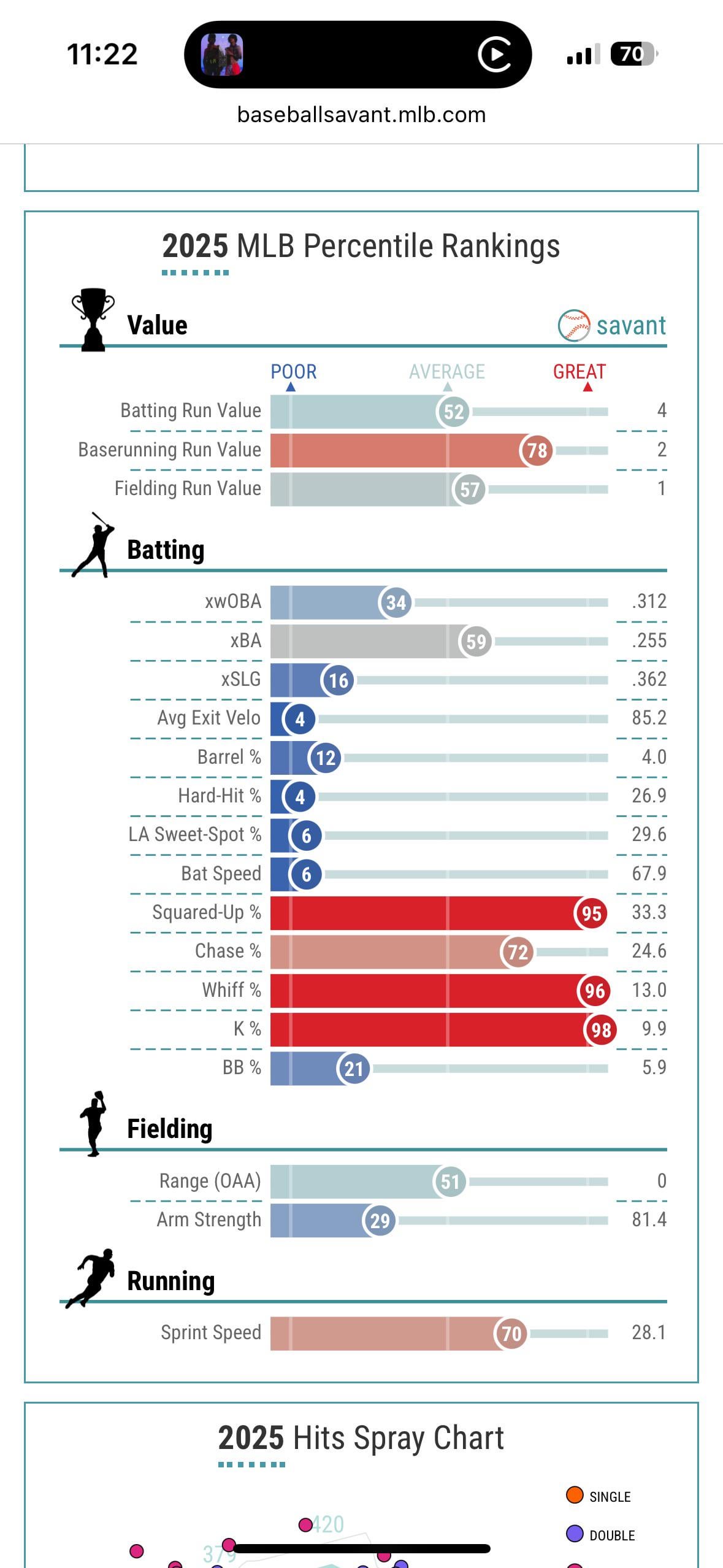 Just to add to this he got hit by pitch 24 times and went 5 for 11 while bunting which both don’t seem sustainable. I think he is really going to struggle to recreate his 2025 OBP.
