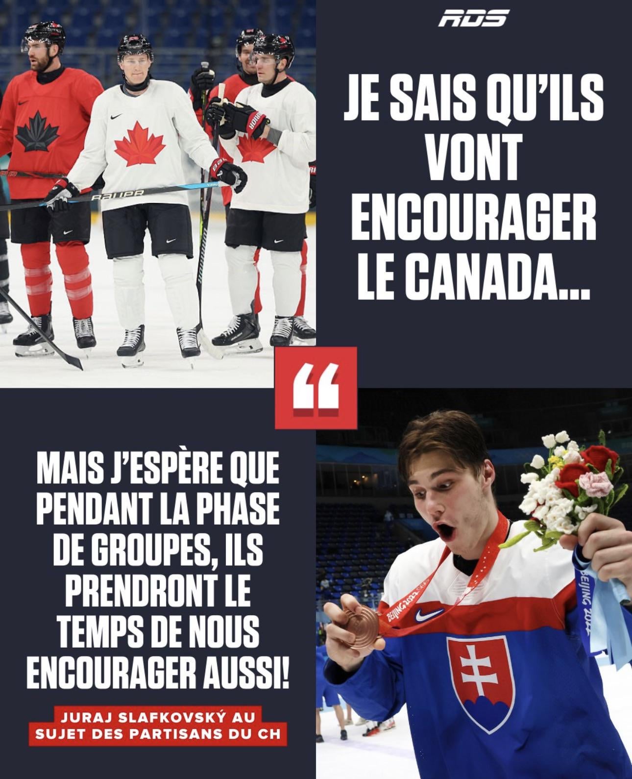 Juraj Slafkovsky on Habs fans: I know that they’ll cheer for Canada, but I hope they take the time to cheer for us during the preliminary rounds as well.”