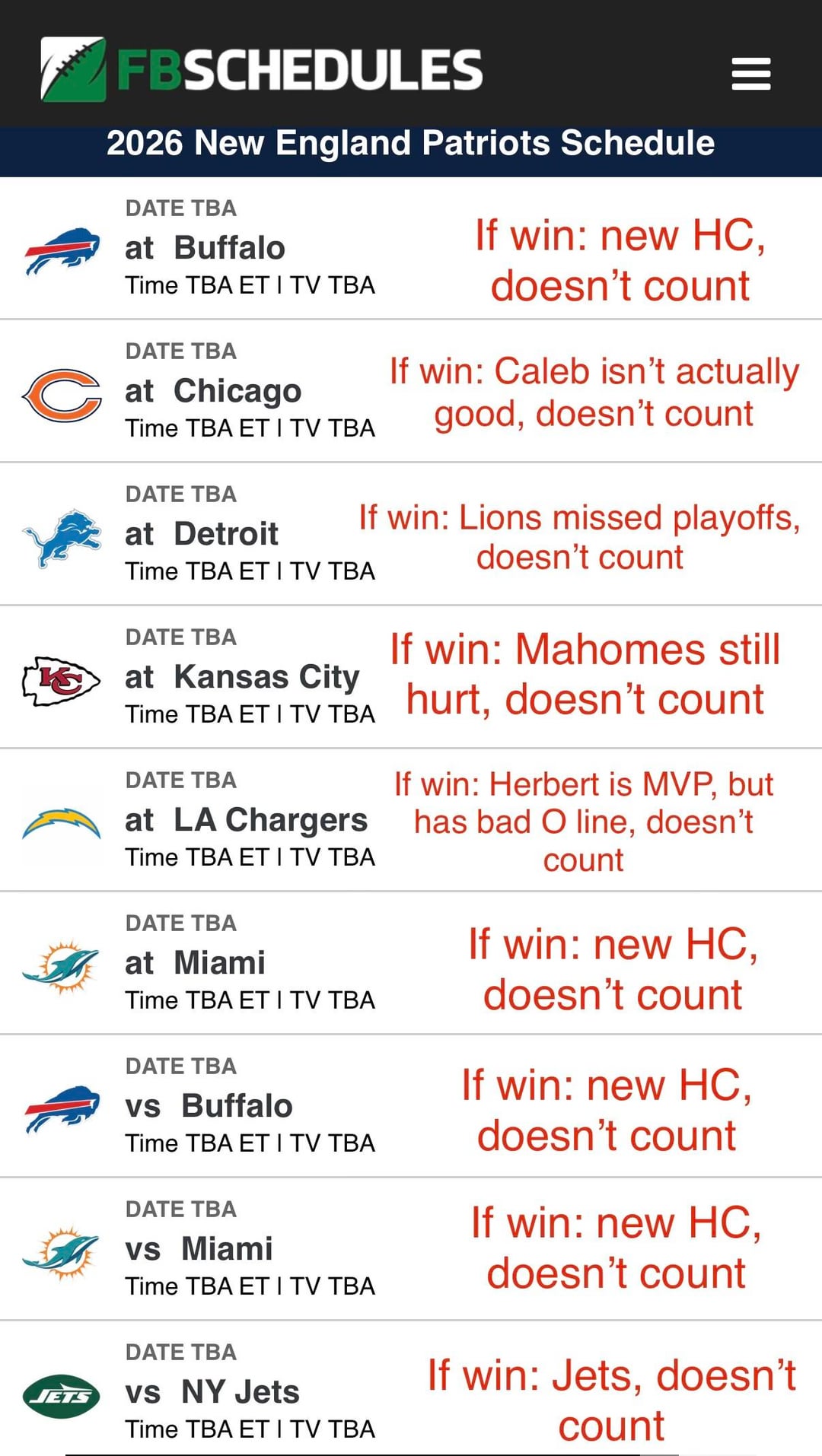 5. Just remember: anyone playing the Pats in 2025 also had an “easy schedule”. How’d that work out for the Bills?