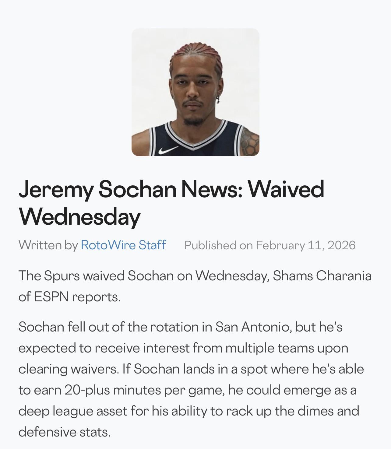 He’s a PF that’s a good defender but terrible offensively. He’s a worse version of Kyle Kuzma. I don’t think we can roster Kuzma, Jericho Sims plus Sochan. We can keep 2 but not all 3.
