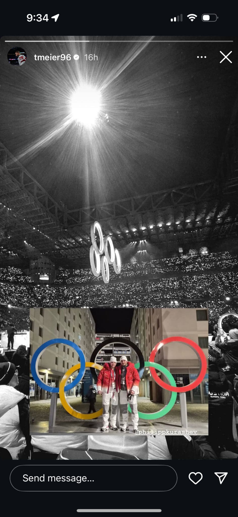 Celebrini and Team Canada attended the short track speed skating Mixed Team Relay Event on Tuesday, witnessing Team Canada win Silver. The team was spotted in the crowd, as well as on public transportation on the way back to the Olympic Village.