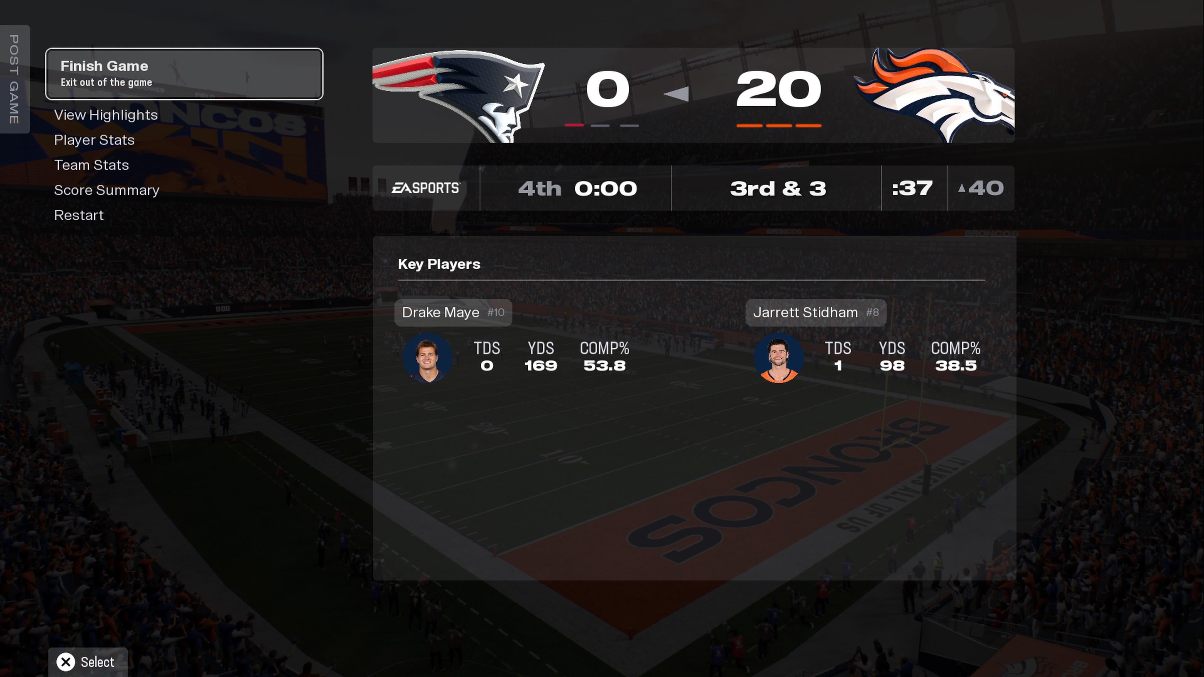The funny thing is that if Sean kicks the FG and Stiddy doesn’t stiddy all over himself for no reason, this may have been the final score. If the Pats are behind in the 2nd half, Maye wouldve turned the ball over and that would be more points for sure.