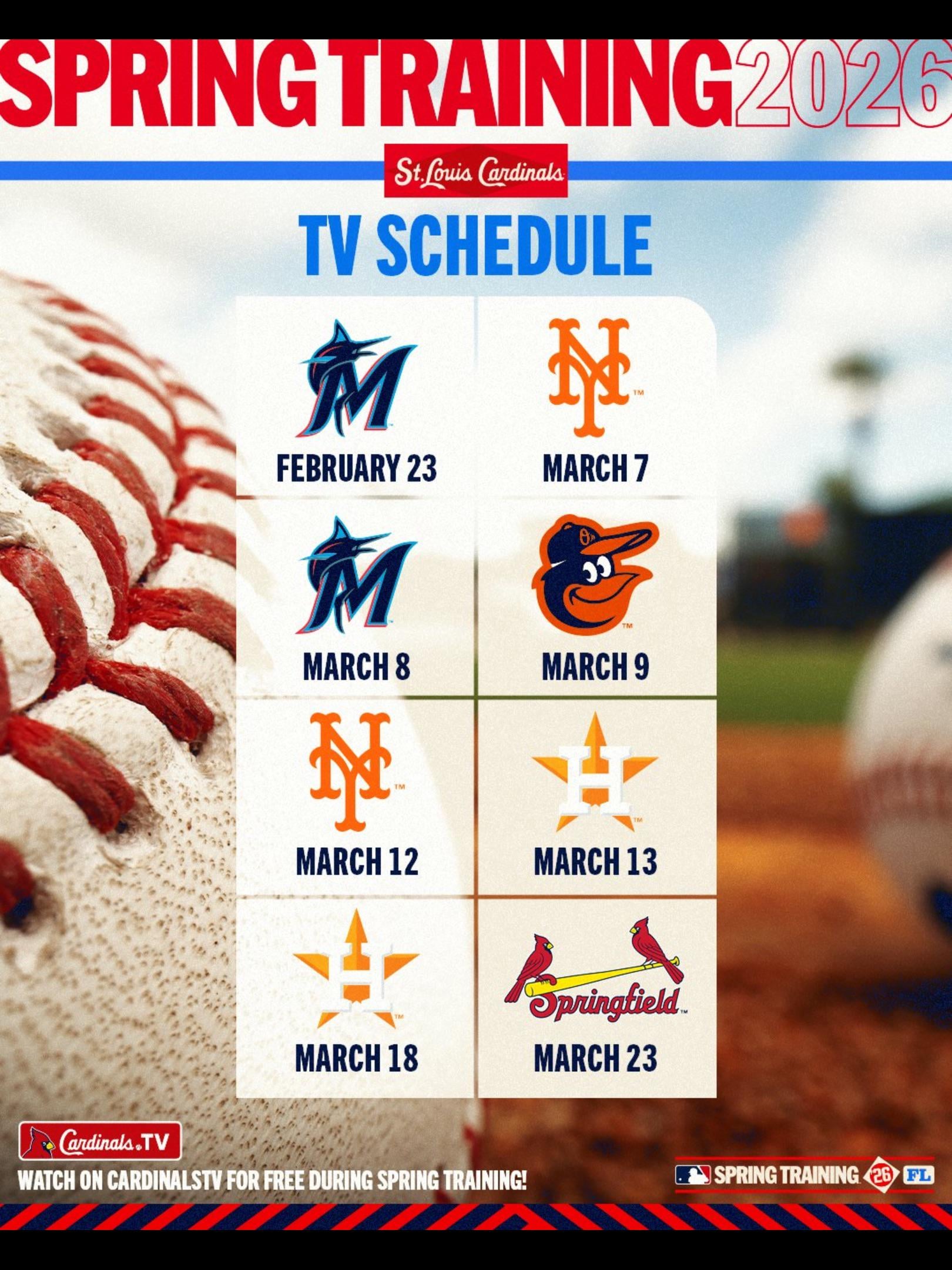 Spring Training TV & Radio Scheduled 5 comments https://preview.redd.it/7d1scc9j25jg1.png?width=1620&format=png&auto=webp&s=4ac2bdfcd3c1edf5fcce302dd02b41e00bbbccc4 Free spring training broadcasts is great news Couple things: – ALL spring games are free whether that be those on Cardinals.tv or those on Matrix Midwest. – in total 16 spring games will be broadcast, these are just the 8 that are also available on Matrix Midwest. Springfield may beat us this year. More games announced: https://preview.redd.it/a6eviv8nt5jg1.jpeg?width=1620&format=pjpg&auto=webp&s=602f3c669f0e5d9184b643215fb91c125a7dceac Leave a ReplyYou must be logged in to post a comment.