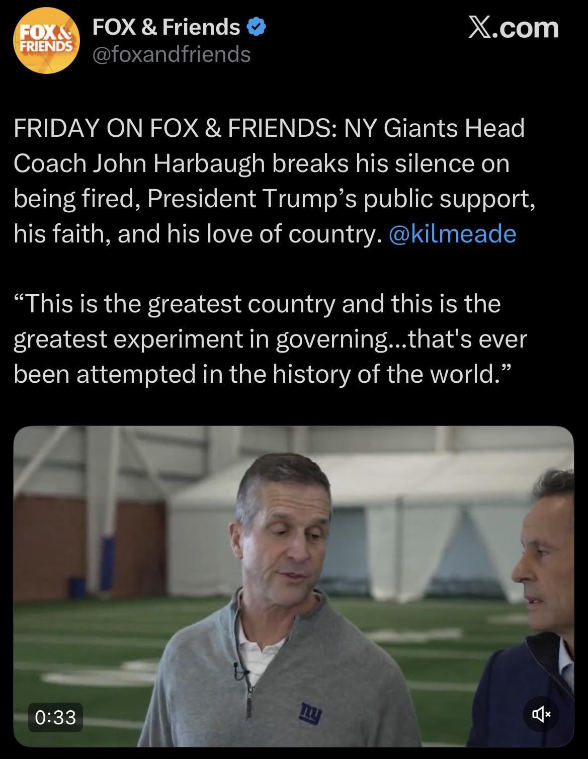 Interesting quote from the head coach of the Giants (John Harbaugh, head coach of the New York Football Giants).