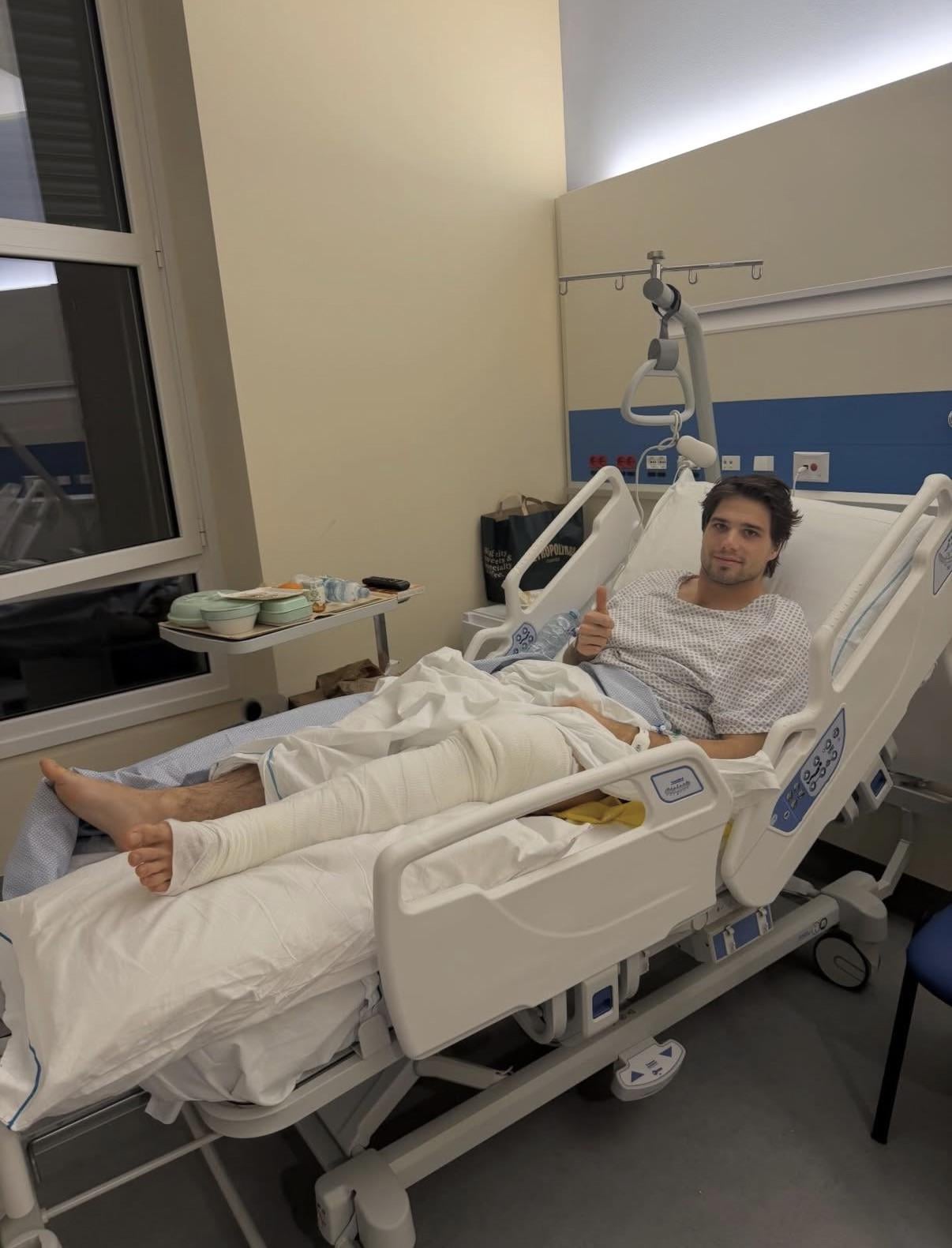 Big bandage part around the upper leg isn’t the best sign, hopefully it’s just scrunched there